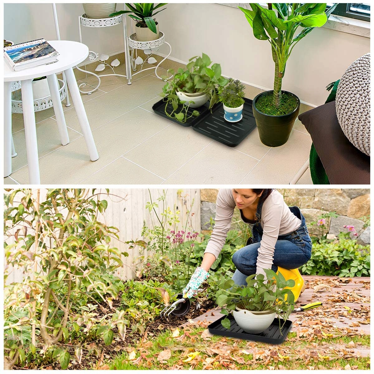 Тацю можна використовувати як у приміщенні, так і на вулиці. Тримайте одну в коридорі, одну в грязьовій кімнаті, а одну надворі, щоб зібрати воду від дощу, снігу та бруду.