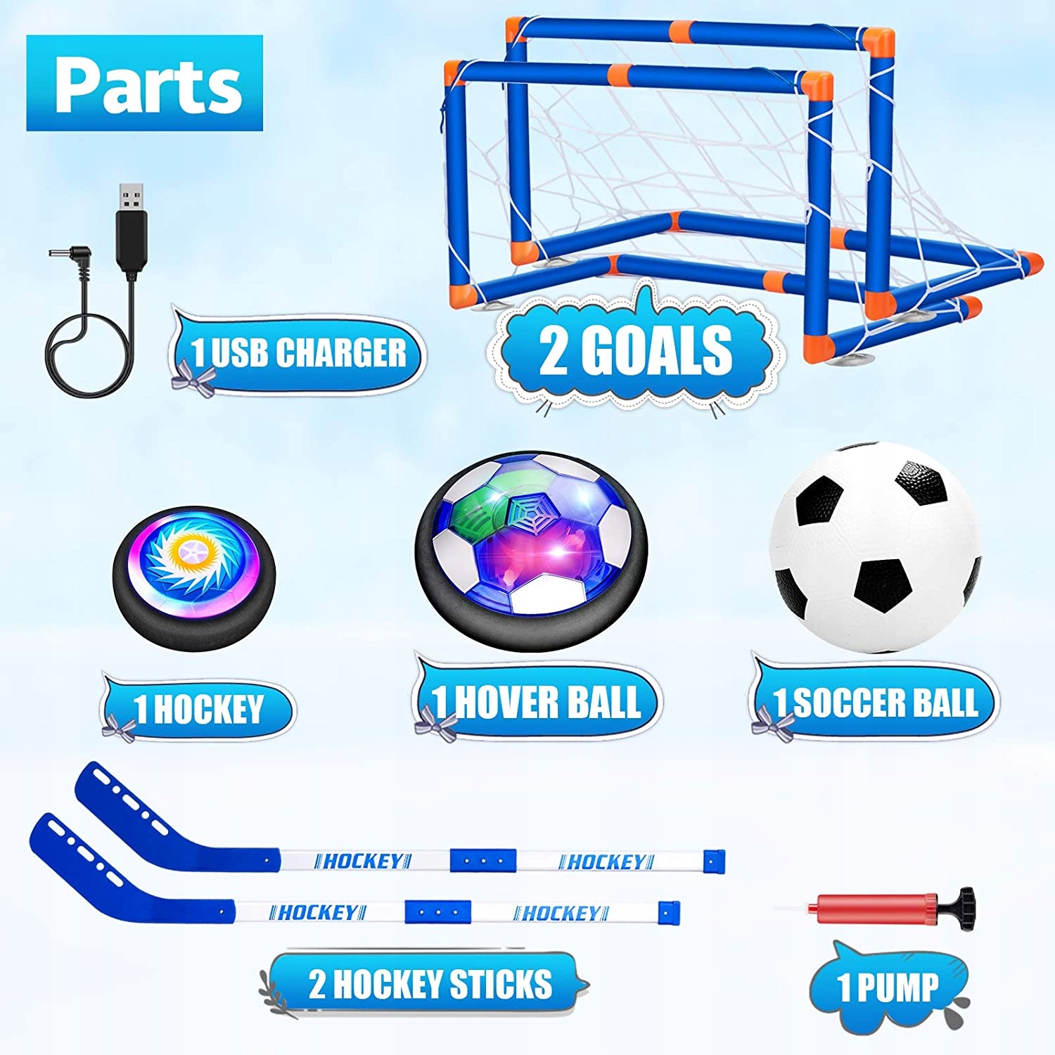 Sillbird Hover Hockey Soccer 2 в 1, набір іграшок для хлопчиків, перезаряджуваний хокей у приміщенні та на відкритому повітрі з 3 воротами та світлодіодом, повітряний хокей та футбольний м’яч, спортивні іграшки, подарунки для хлопчиків, дівчаток 3-12