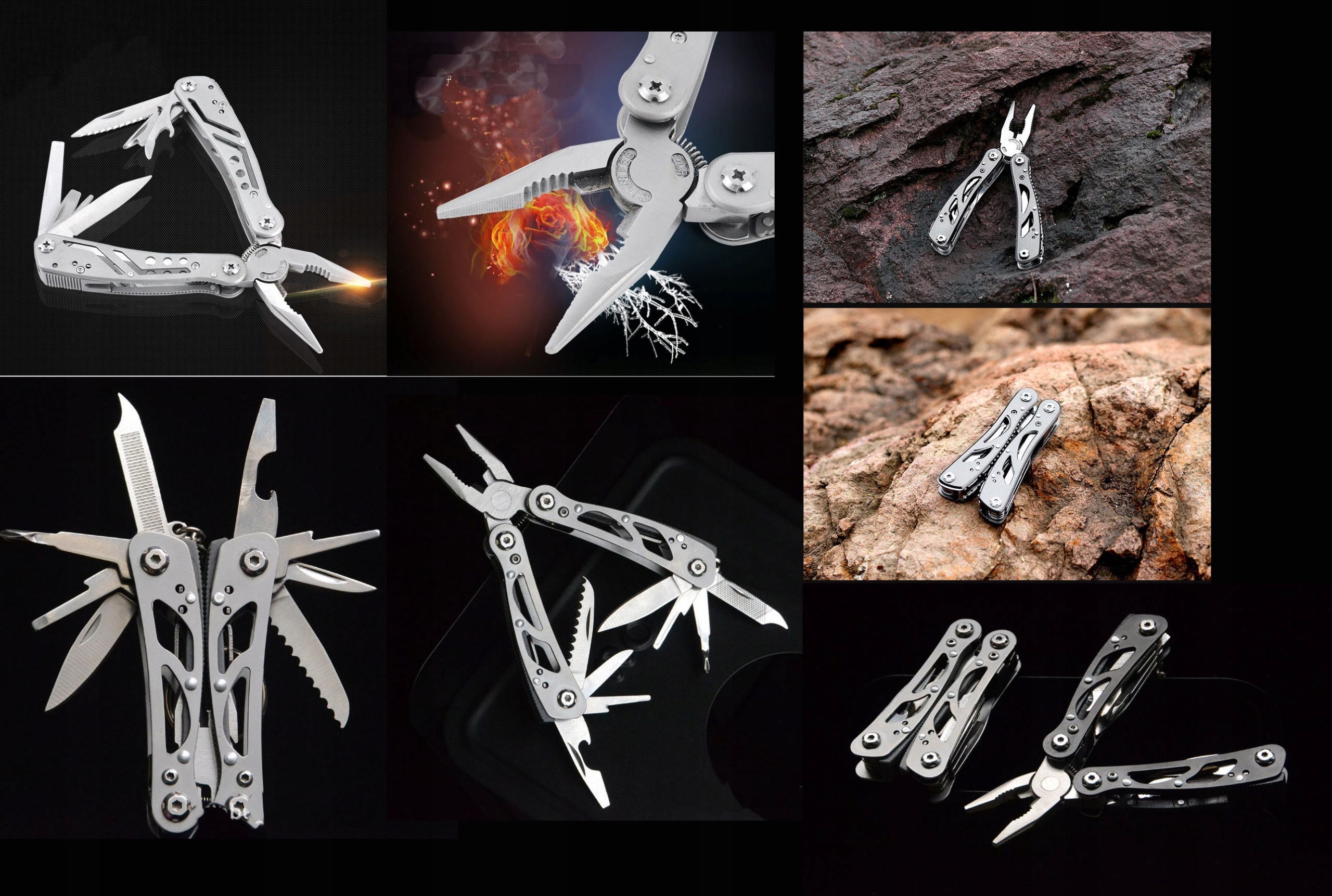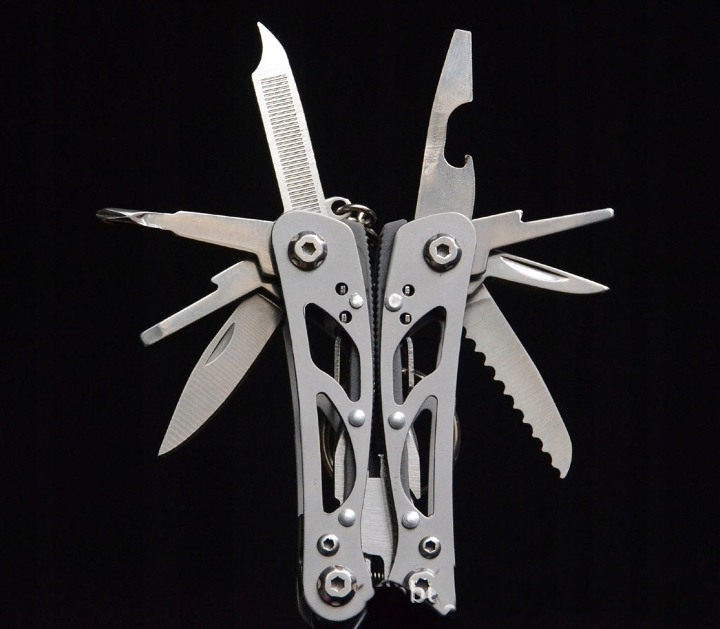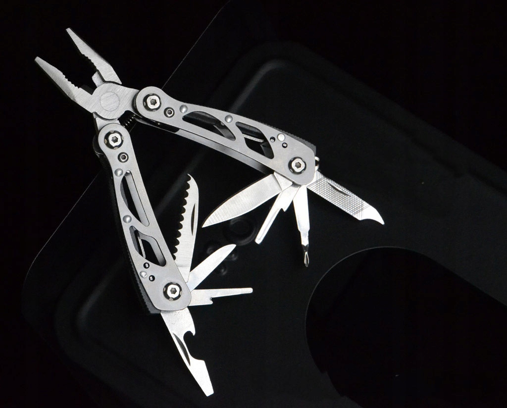 Соцільний мультитул з набором інструментів для роботи в полі, на риболовлі чи кемпінгу. Окрім плоскогубців із можливістю різання дроту, в ньому є 3 викрутки, ніж, напилок, відкривачка для пляшок, консервний ножик, зубчасте лезо, дозатор гачка та скребок для риби