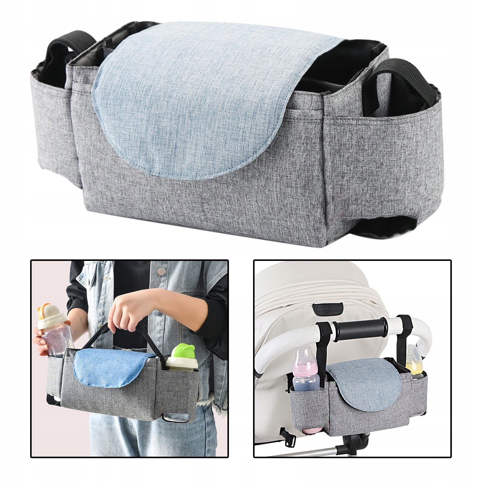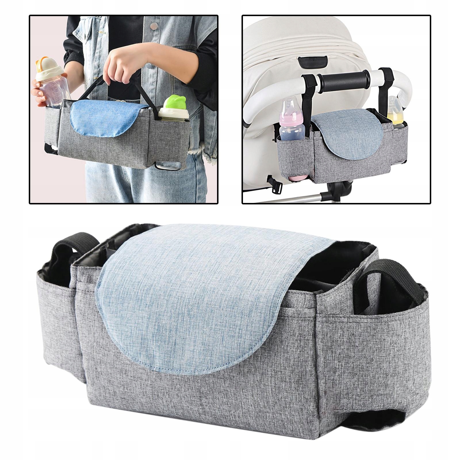 ПІДВІСНА СУМКА ДЛЯ ДИТЯЧОЇ КОЛЯСКИ: її можна легко прикріпити до будь-яких штанг і ручок коляски. .
