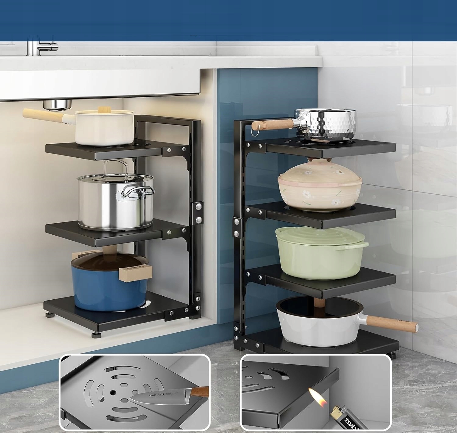 - Супер стабільна конструкція, міцна потовщена вуглецева сталь, висока навантаження, може підтримувати 49 кг, кожен шар має велику вантажопідйомність 6,8 кг, може легко вмістити найсерйозніші кухонні страви, включаючи чавун, тверді панелі. Папери, керамічні каструлі тощо. Цей організатор на сковороді не трісне, не деформується і не іржавий, його дуже легко чистити. Безумовно, чудовий півзахисник в організації кухонного посуду. 4 Організатор для зберігання горщиків та організацій на кухні.