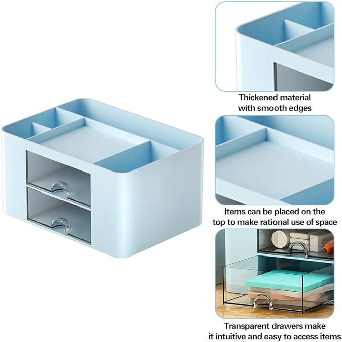 - ✔ Матеріали високої якості - Організатор столу виготовлений з високоякісної пластику, з плавними, спустошеними краями, 5 відділень з прозорими ящиками, легким доступом до предметів і підходить для повторного використання. прозорі ящики. Ви можете сортувати та зберігати повсякденні предмети, такі як ручки, чагарники, скоби, ножиці, лінії, клеї, в'яжучі, нотатки, шпильки та ручки. Ідеальний організатор столу зробить вашу кімнату чистішою та впорядкованою. Тринкет. Цей організатор може зберігати ручки, офісні приладдя, пензлі, пульт дистанційного керування та столові прибори, ідеально підходить для дітей, офісів та сімей. Це подарунок для студентів, викладачів та офісних працівників.