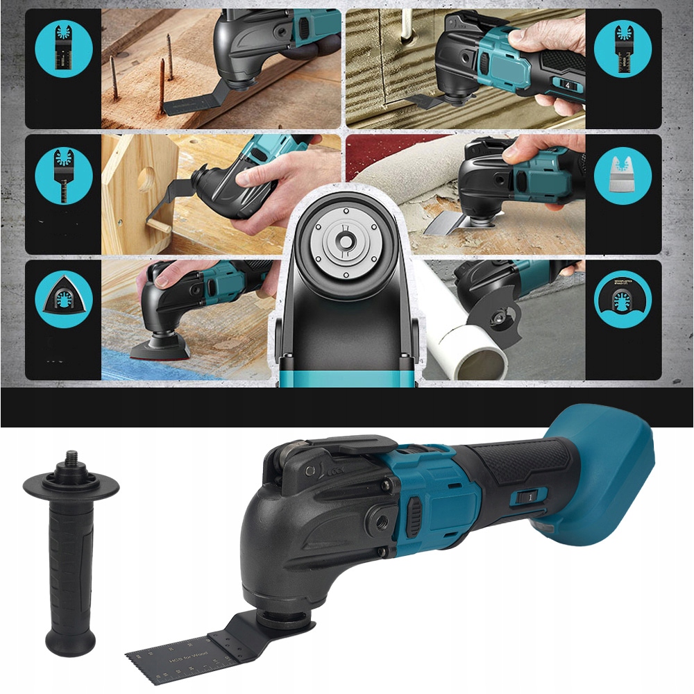 Акумуляторний осцилюючий інструмент ідеально підходить для пиляння, копання, різання, шліфування, наповнення та фрезерування. Це універсальний інструмент для усунення несправностей для ремонту електрики, ремонту будинків, складання меблів, особистих проектів DIY і навіть незначних виправлень.