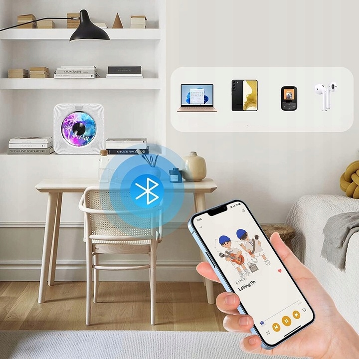 - програвач компакт-дисків Bluetooth обладнано з набором для настінного кріплення та пластиною, яку можна легко встановити на стіну, щоб заощадити місце,