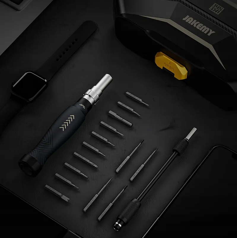 ✅ Універсальний набір інструментів Jakemy JM-8183 містить усі необхідні елементи інструменту: найбільш часто використовувані насадки для викруток, ергономічна ручка, гнучкий подовжувач та інші корисні інструменти, які допоможуть вам без проблем відремонтувати будь-яку електроніку.