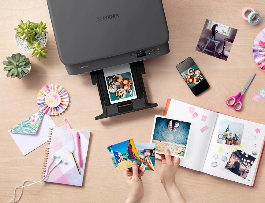 canon pixma ts5355a - це пристрій з мінімалістичною формою та рівномірними кольорами, які добре представляться в кімнаті підлітка та в елегантному кабінеті. Він також характеризується простою експлуатацією, завдяки інтуїтивному OLED -дисплея з діагоналі 1,44 дюйма та функцією бездротового з'єднання з іншим обладнанням.