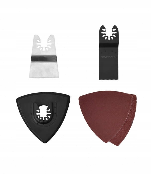 Основне оснащення включає в себе, серед іншого, плоске лезо 32 мм, яке використовується для різання у важкодоступних місцях і пророблення отворів у дошках, гіпсокартонних плитах тощо. Інше доповнення — шліфувальна пластина з двома видами наждачного паперу товщиною 60 і 120. Форма шліфувальної пластини дозволяє шліфувати в раніше недоступних кутах. За допомогою скребка, який входить в комплект, ви видалите не тільки стару фарбу, але і клейкі матеріали, такі як лінолеум, килими, різні ущільнювачі тощо.