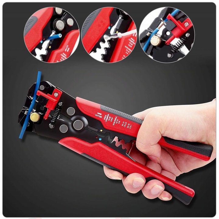 - РЕГУЛЮВАННЯ СИЛИ ТИСКУ + ОБМЕЖЕННЯ - b>пристрій має ручку, яка розташована під губками. З його допомогою ви можете регулювати тиск на ізоляцію, тому вам не доведеться турбуватися про пошкодження дроту під час роботи.