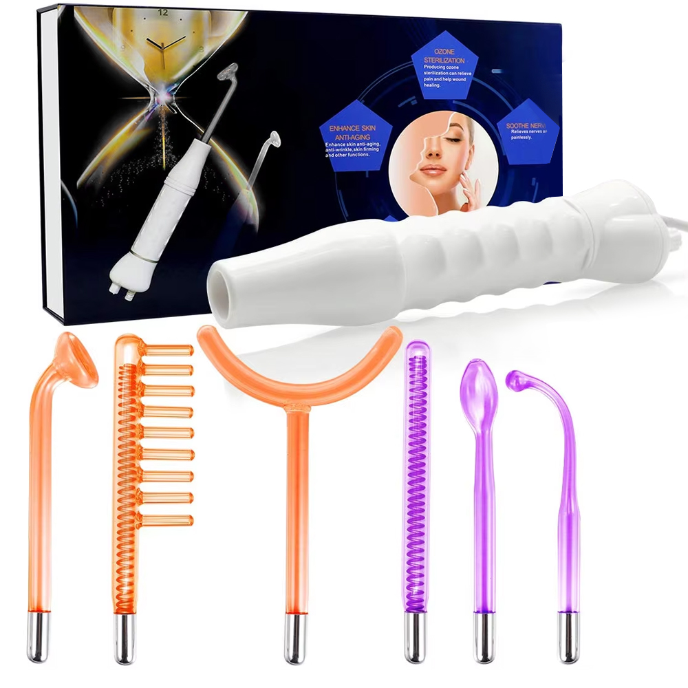 ☑️ Оснащений 6 скляними трубками для задоволення різних потреб. Грибоподібна трубка призначена для щік, чола і підборіддя. Вигнута трубка призначена для вузьких ділянок, таких як ніс. Язикоподібна трубка призначена для очей і рота. Трубка-гребінець призначена для шкіри голови. Пряма трубка призначена для плоских частин тіла. Y-подібна трубка призначена для шиї та плечей.