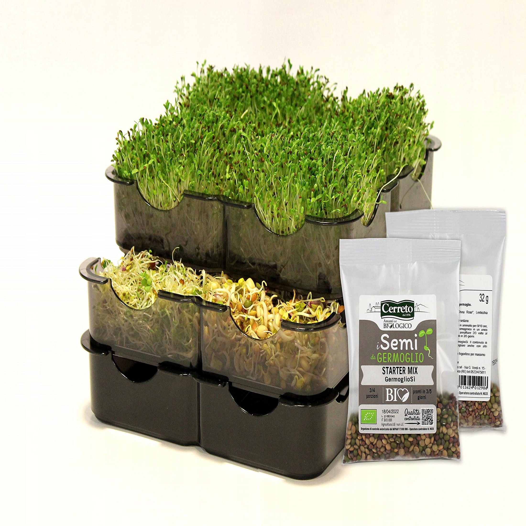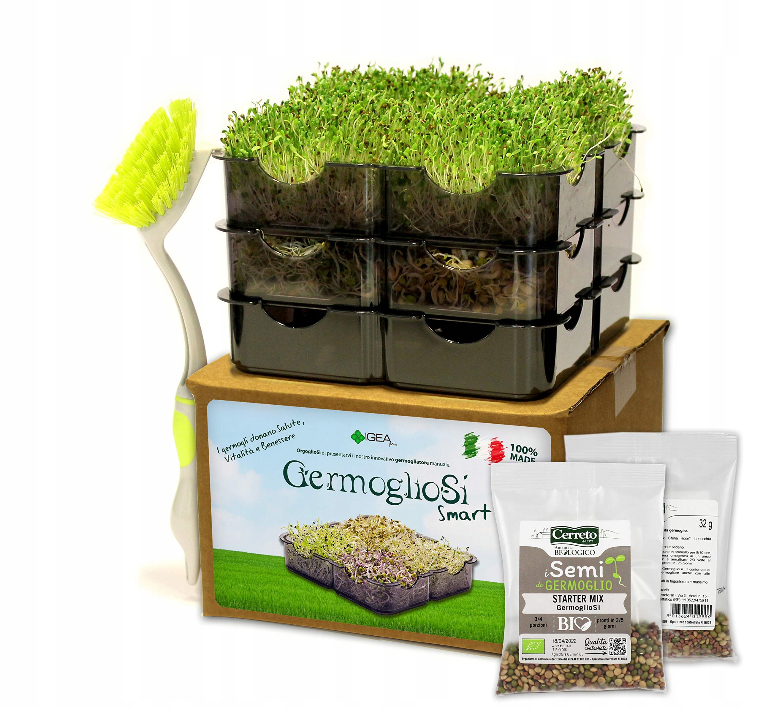 Інноваційний продукт, розроблений у співпраці з Інженерним відділом Університету Перуджі та результат більш ніж 10-річного досвіду у сфері внутрішніх сходів. Його також можна використовувати для виробництва паростків у домашніх умовах із простих склянок, скла, гороху чи рису (цілого горіха), сої, гарбуза чи інших паростків, придатних для споживання людиною (бажано, ніж органічних).