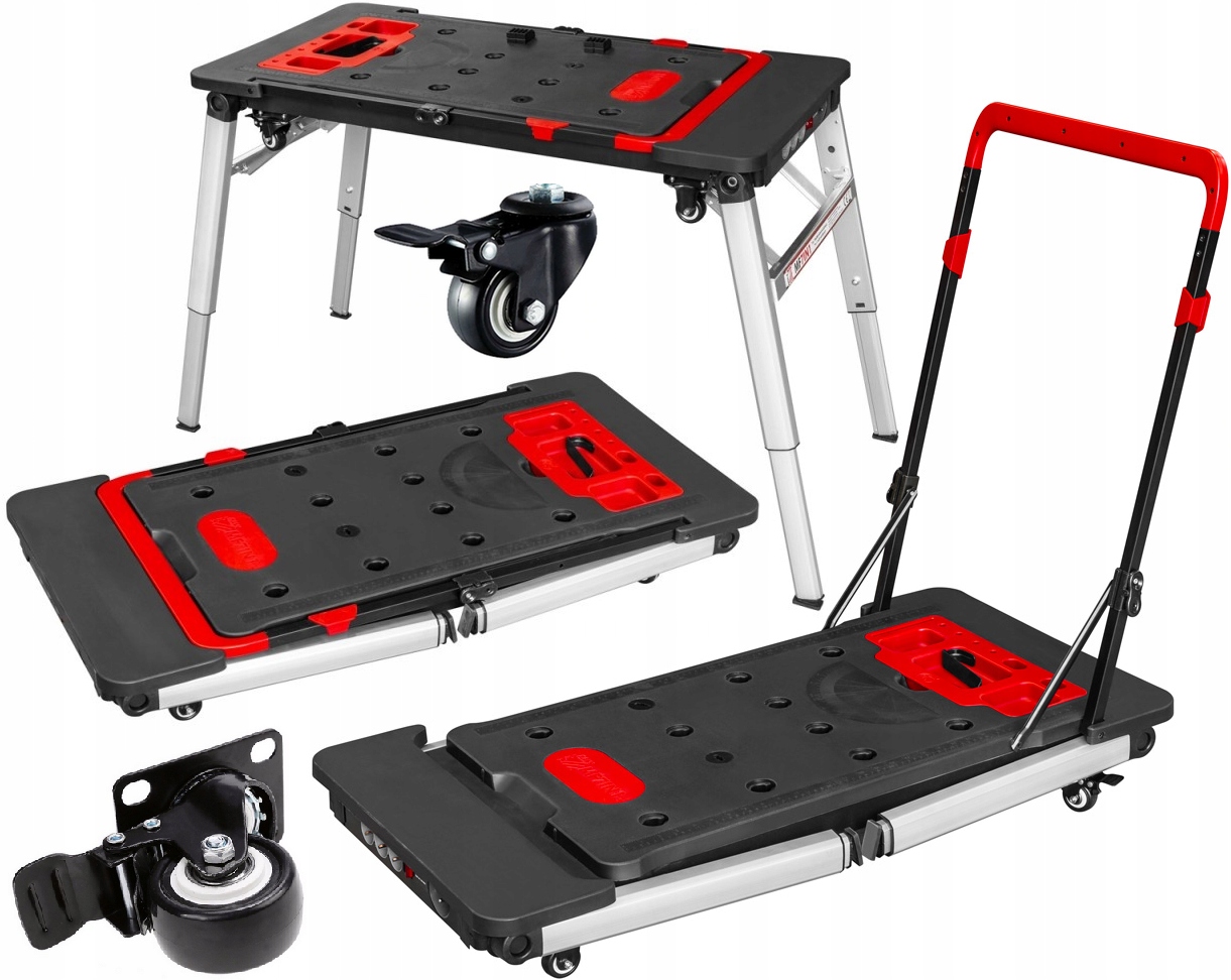 - 7 функцій в одному пристрої: верстак, візок, будівельні ліси, робоча платформа, кушетка для майстерні, мобільний пристрій, ручний візок