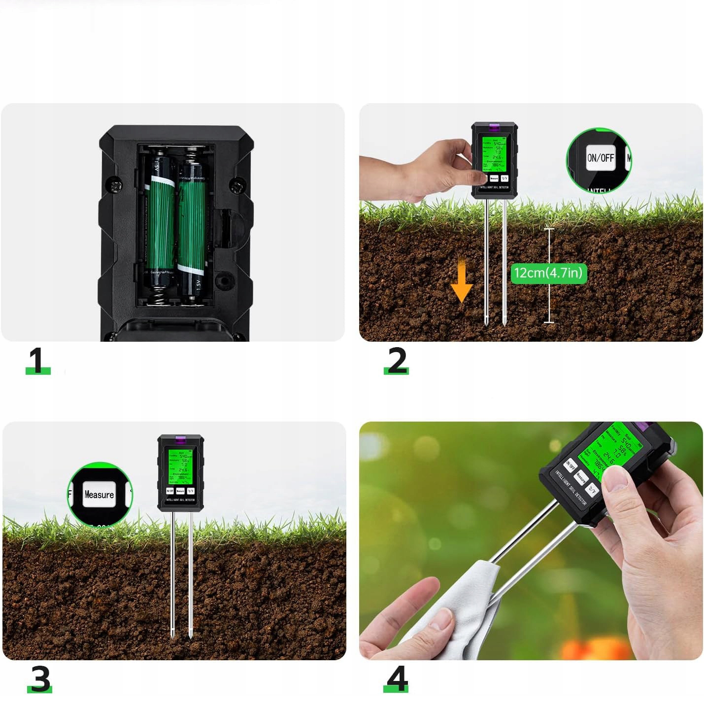 🌱🌱 Простий у використанні: Просто покладіть дві акумулятори AAA (без 2*акумулятор AAA) , покладіть в землю 2/3, а потім натисніть кнопки живлення та тесту. Менш ніж за 10 секунд ви отримаєте ретельне читання. Не забудьте очистити зонд після кожного використання для підтримки чутливості та забезпечення довгострокових показників.