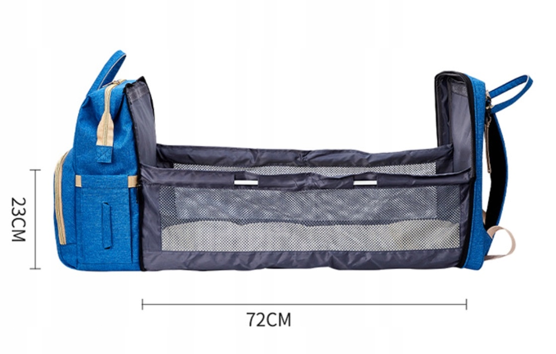 Вдень він служить багатофункціональною та багатокишеньковою сумкою для мами або для коляски з аксесуарами для догляду за дитиною, а вночі перетворюється на дихаючу дорожню ліжечко для дитини.