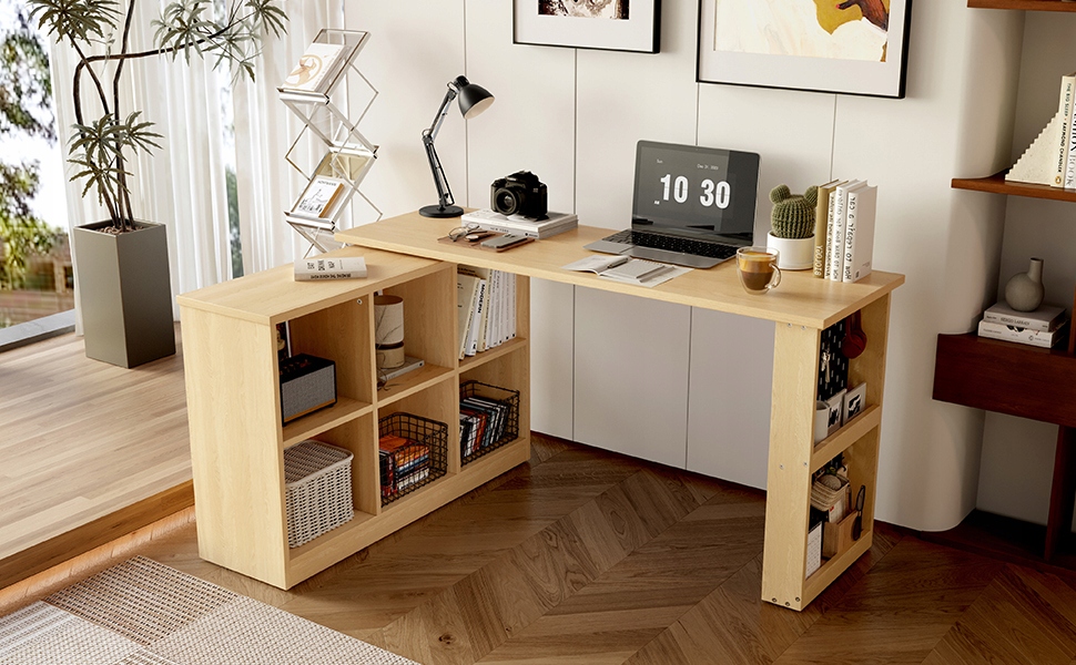 140 x 104 x 75 см багатофункціональний офісний стіл, шестикамерна шафа + полиця, широка і товста верхня, перфорована пластина + полиця, дуже міцна, змінна форма, натуральна