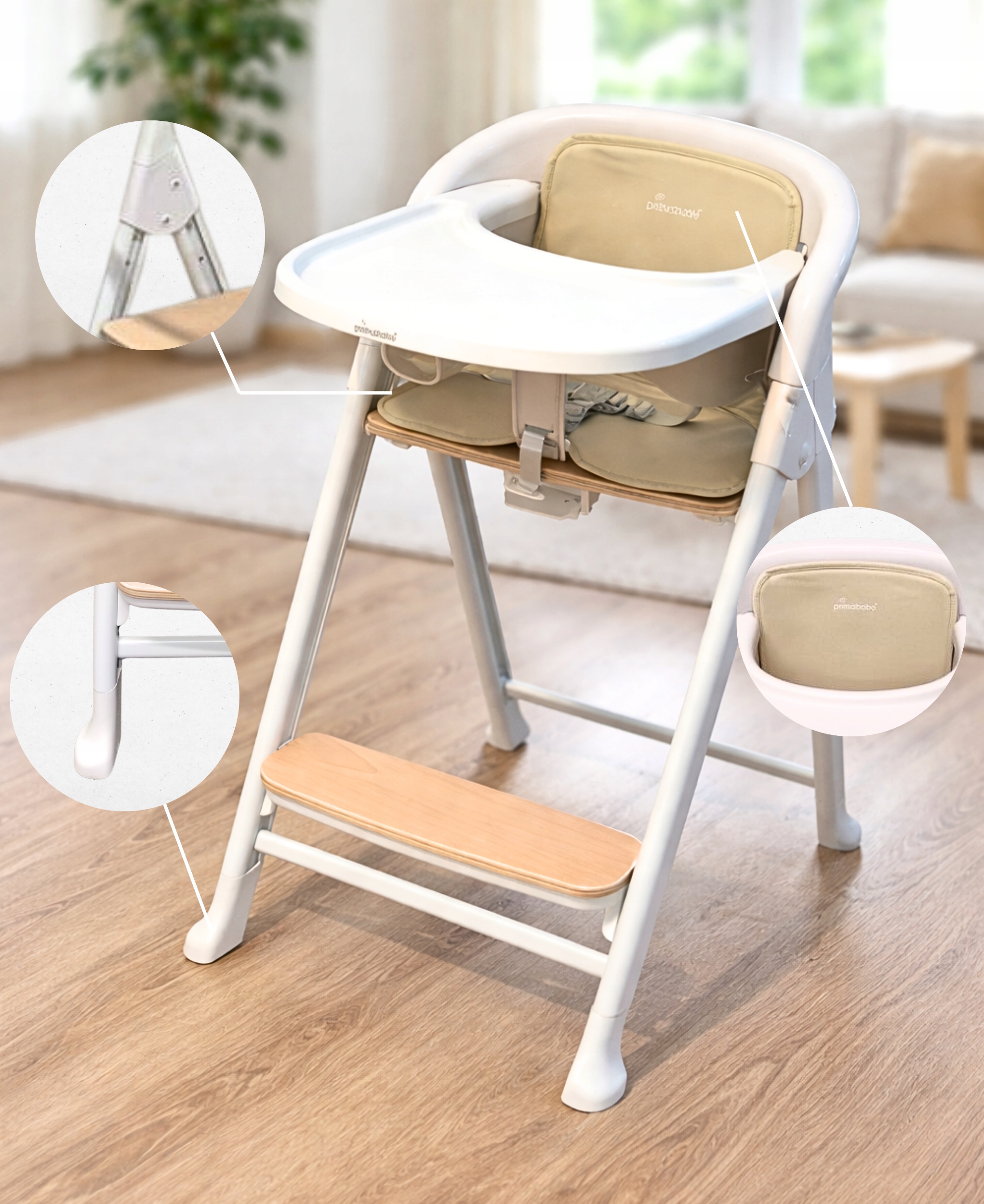 Багатофункціональний стільчик для годування + вишибала PRIMABOBO 4в1 BELI, білий