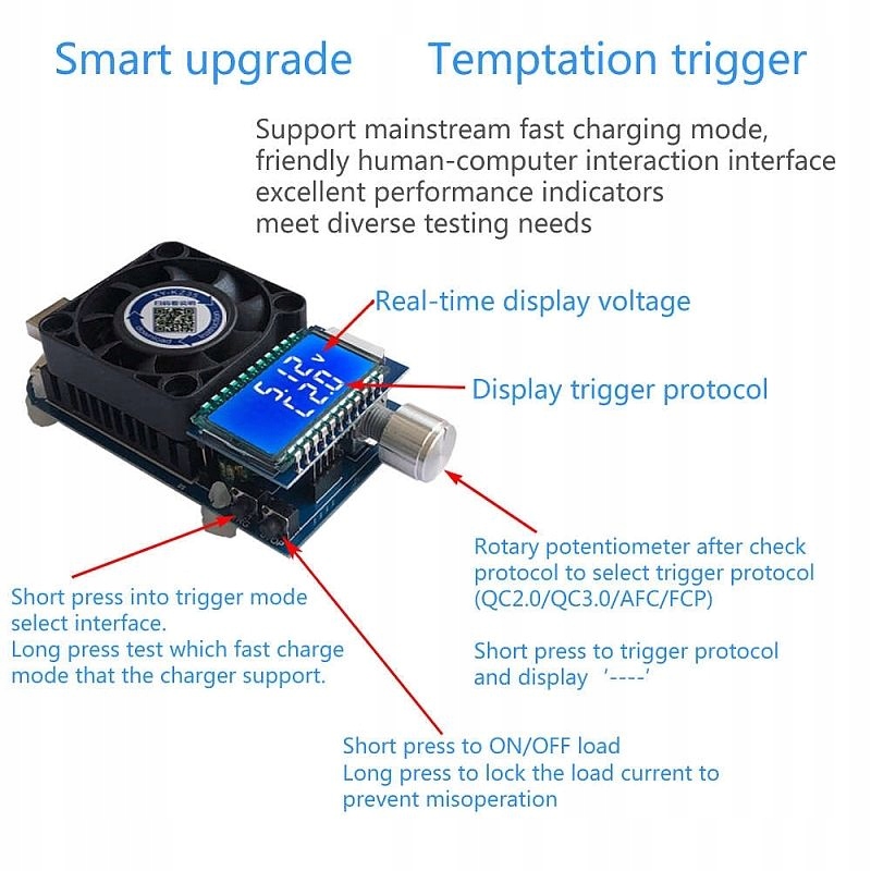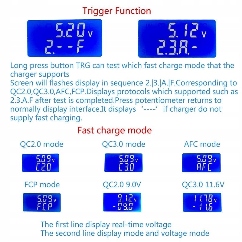 The tester allows versatile and thorough testing of USB chargers in the range: