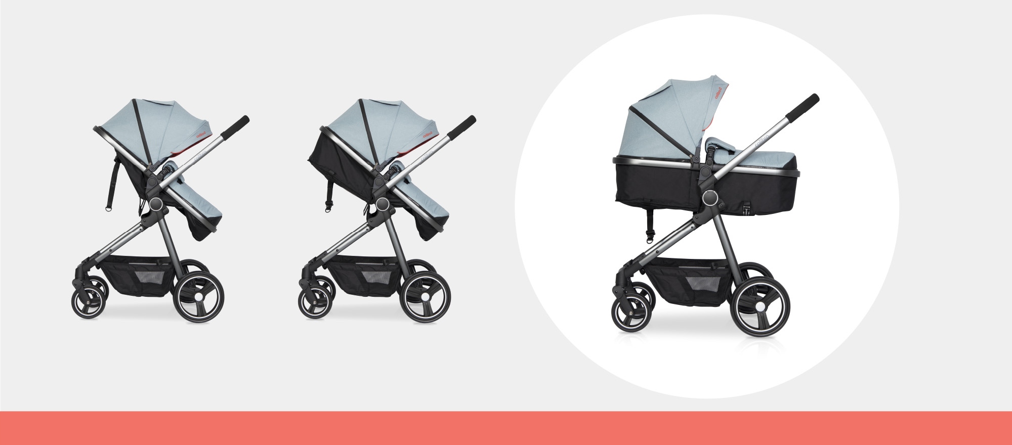 Версію гондоли та сидіння коляски можна встановити обличчям вперед або назад.