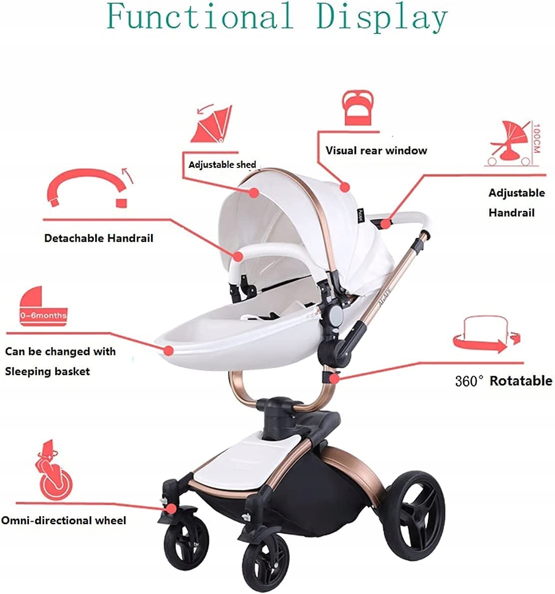 БАГАТОФУНКЦІОНАЛЬНИЙ ВІЗОК 3в1 AGAPE 360° ЕКО ШКІРА БІЛА