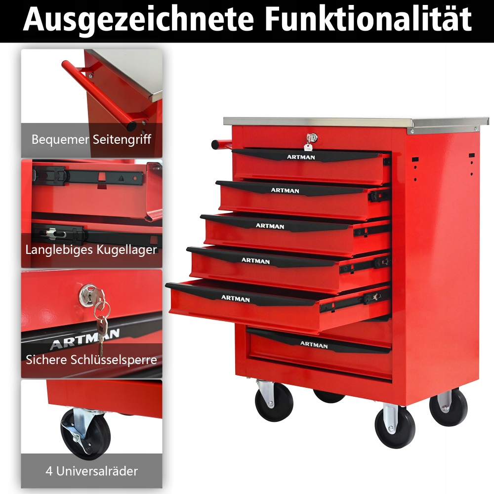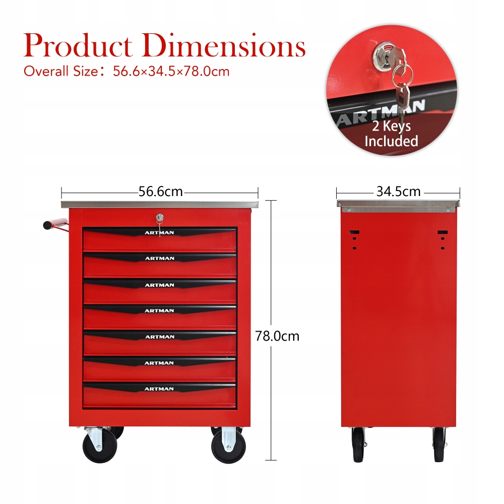 Багатофункціональний візок для інструментів із 7 шухлядами з колесами, чорний і червоний, міцний