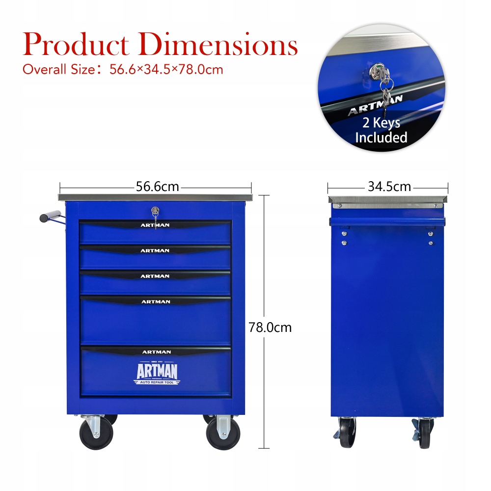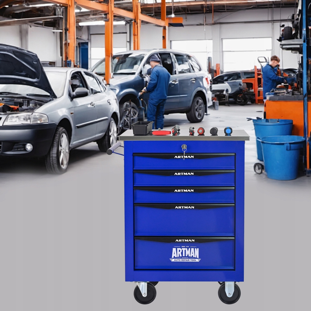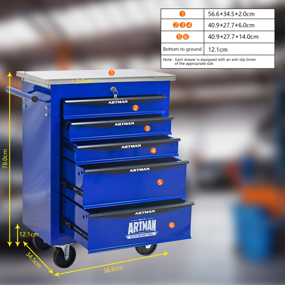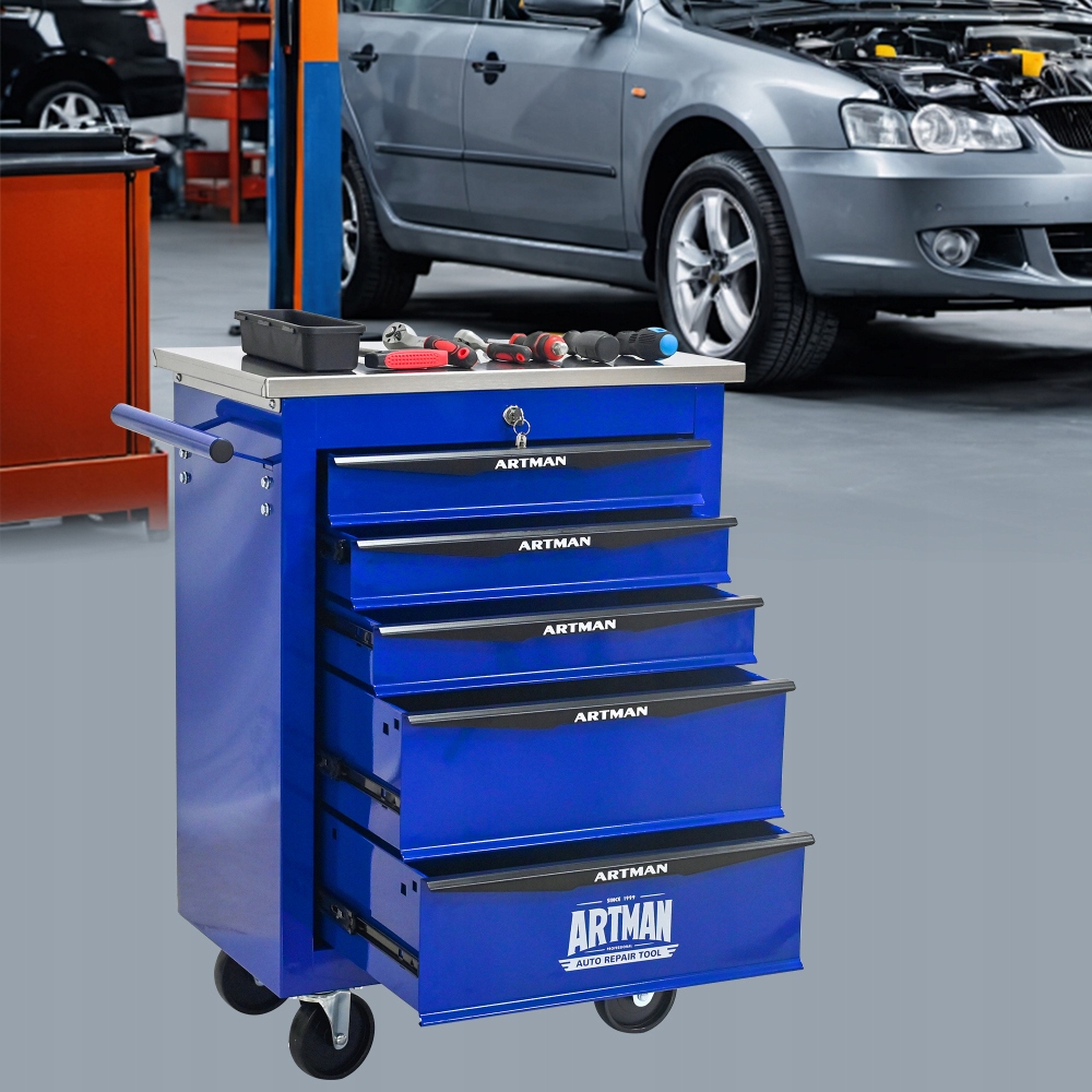 Багатофункціональний візок для інструментів, тумба на 5 ящиків з колесами, синій