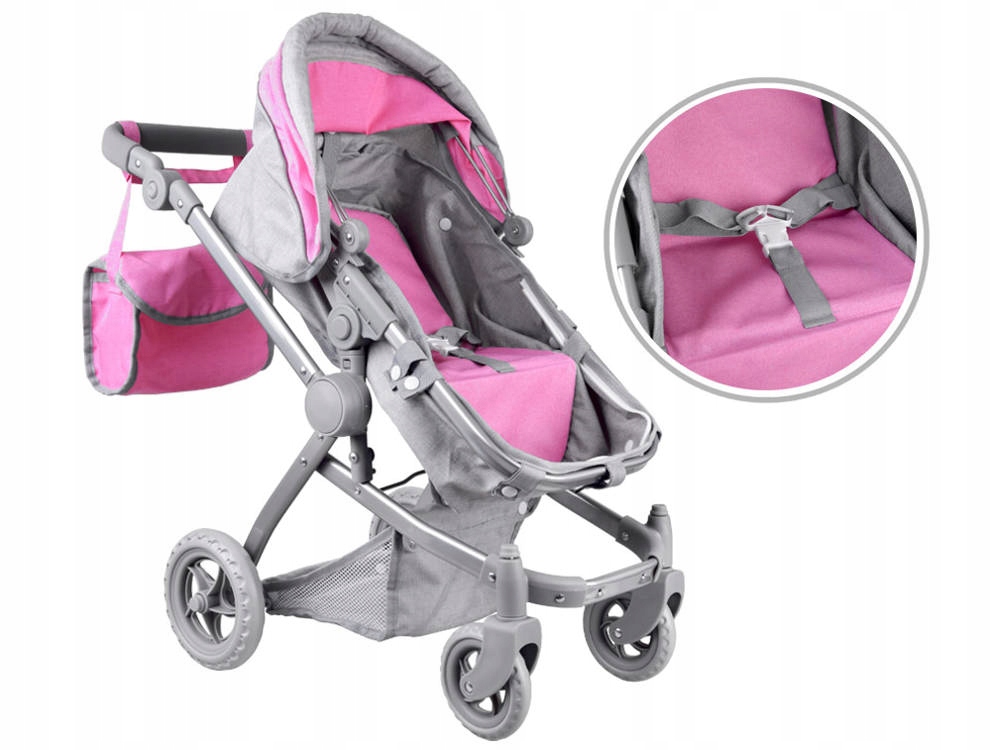 Велика, маневрена коляска-гондола з варіантом 4-в-1 для найменших порадує кожного маленького вихователя ляльок, плюшевих ведмедиків та інших приємних тварин. Коляска дуже акуратно і точно зроблена, з легкою конструкцією. Її перевага в тому, що з однією коляскою вона трансформується з глибокої коляски в прогулянкову, без додаткових кошиків і кріплень. Завдяки кільком засувкам ми можемо легко перетворити гондолу на коляску.