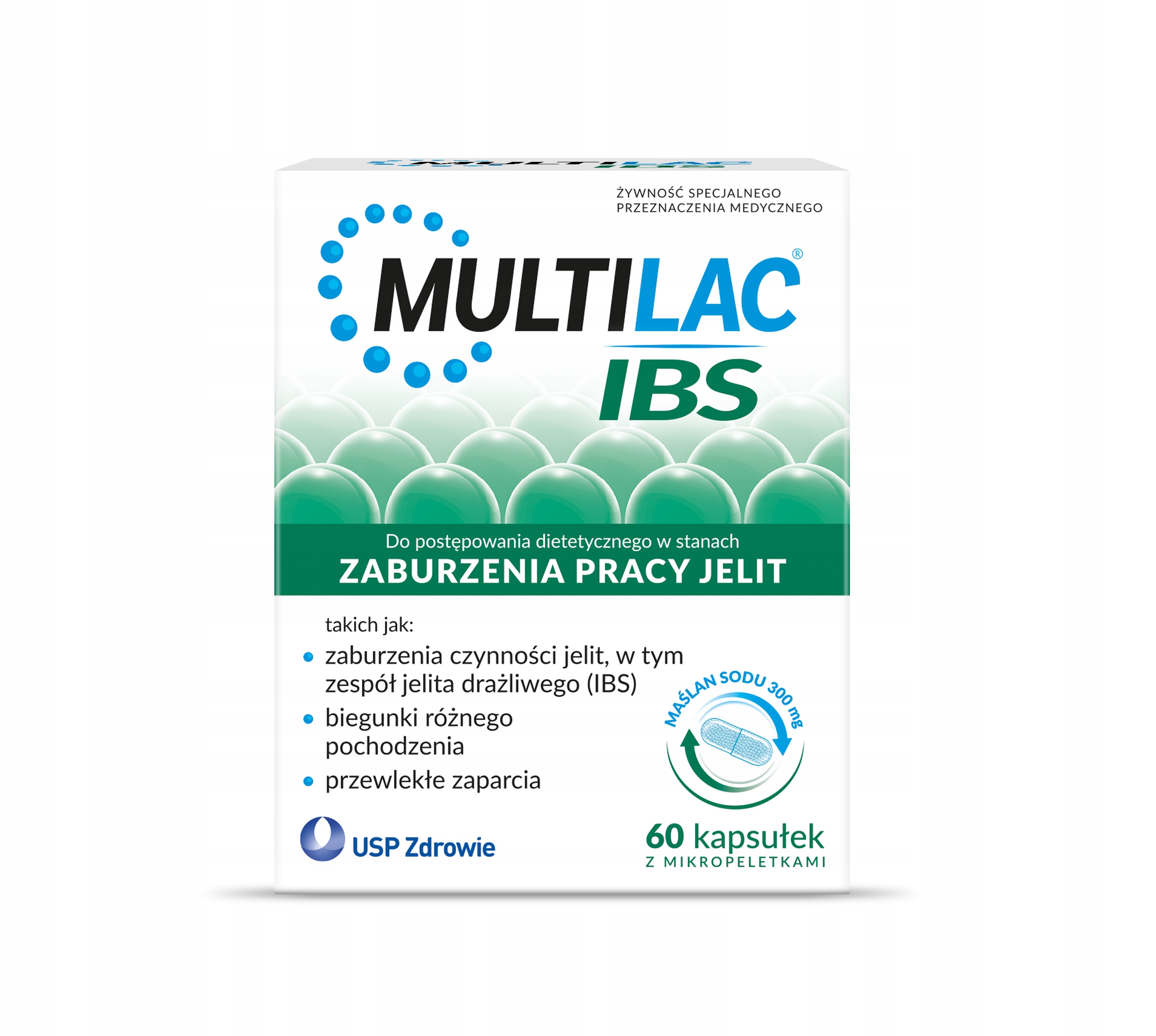 Multilac IBS - це препарат для людей з кишковими порушеннями, такими як діарея, запор, біль у животі, метеоризм, дратівливий кишечник. дослідження. Масло натрію в препараті укладено в мікростах, які дозволяють розподілити масляну по всьому шлунково -кишковому тракту. У продукті немає пальмової олії. Специфічний запах Баттероли був нейтралізований.
