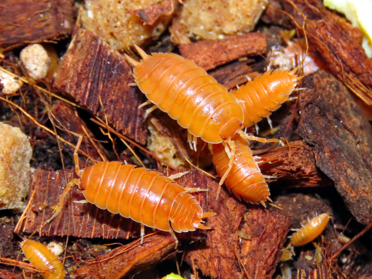 - як санітарна та прибиральна команда у вологих тераріумах - тому що ці багатоніжки харчуються всіма органічними залишками (крихтами їжі, линьками, фекаліями тощо) як а також цвіль і водорості, і, крім того, вони абсолютно нешкідливі для тварин.