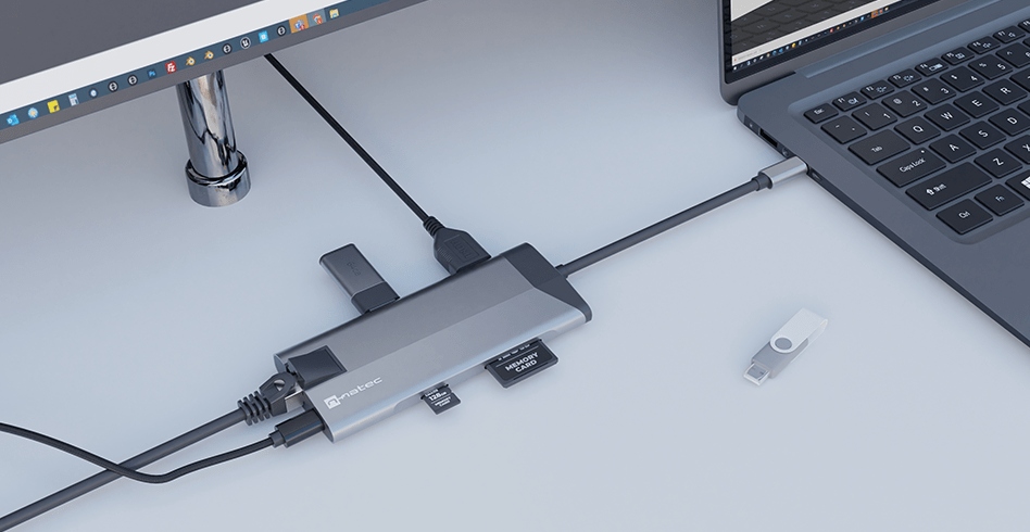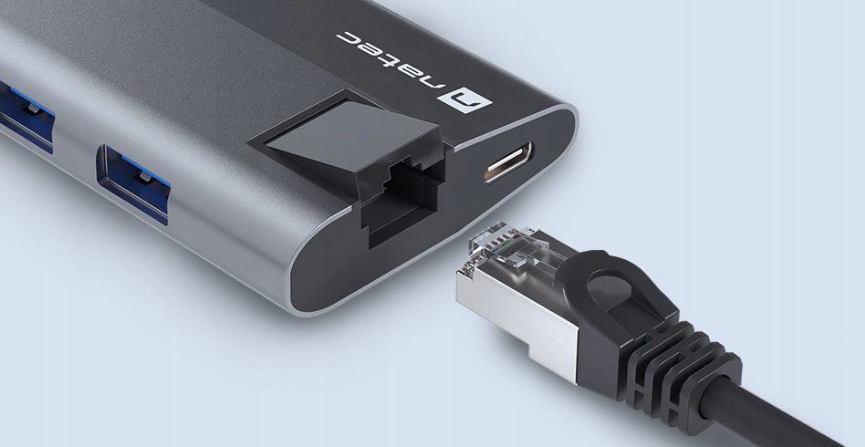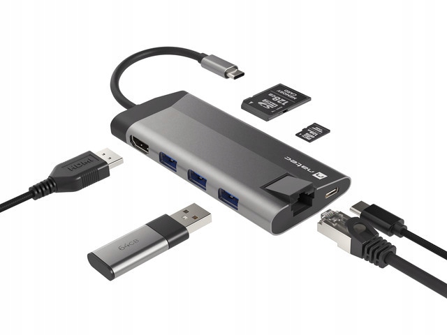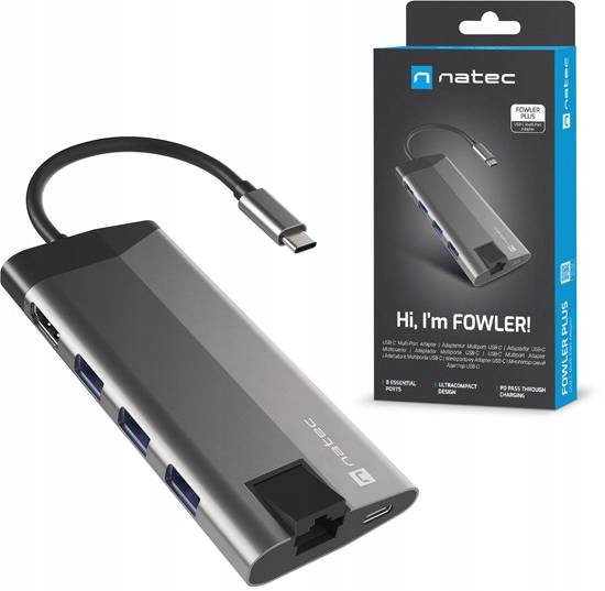 Natec Fowler Plus - це невеликий багатопортовий, який вирішить ваші проблеми і дозволить підключити все, що завгодно. Він оснащений аж 8 портами, серед яких ви знайдете 3 розетки USB 3.0 Type A, HDMI 1.4, що підтримує роздільну здатність 4K, два читачів карт (SD та MicroSD) і навіть RJ-45 (1 ГБ/с) та USB-C-Socket, що підтримує стандарт зарядки потужності 3.0. Використання аксесуарів ніколи не було таким комфортним.