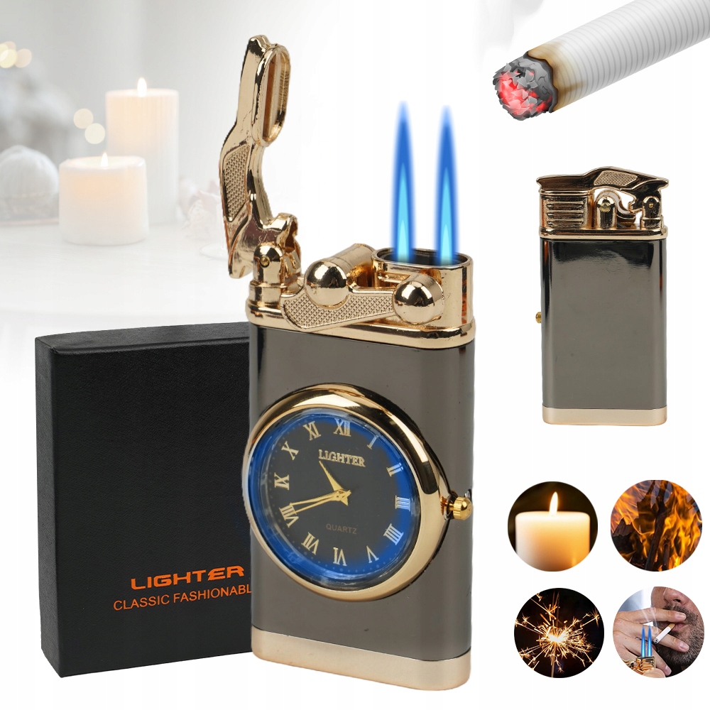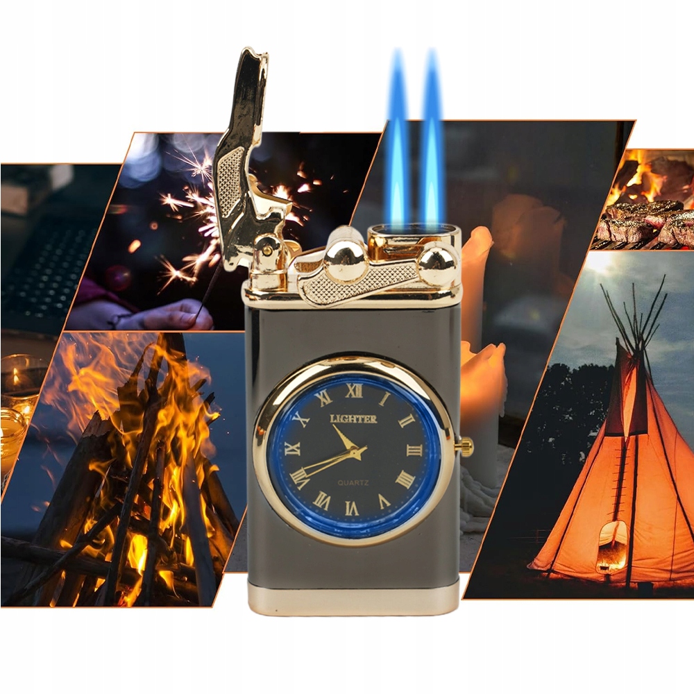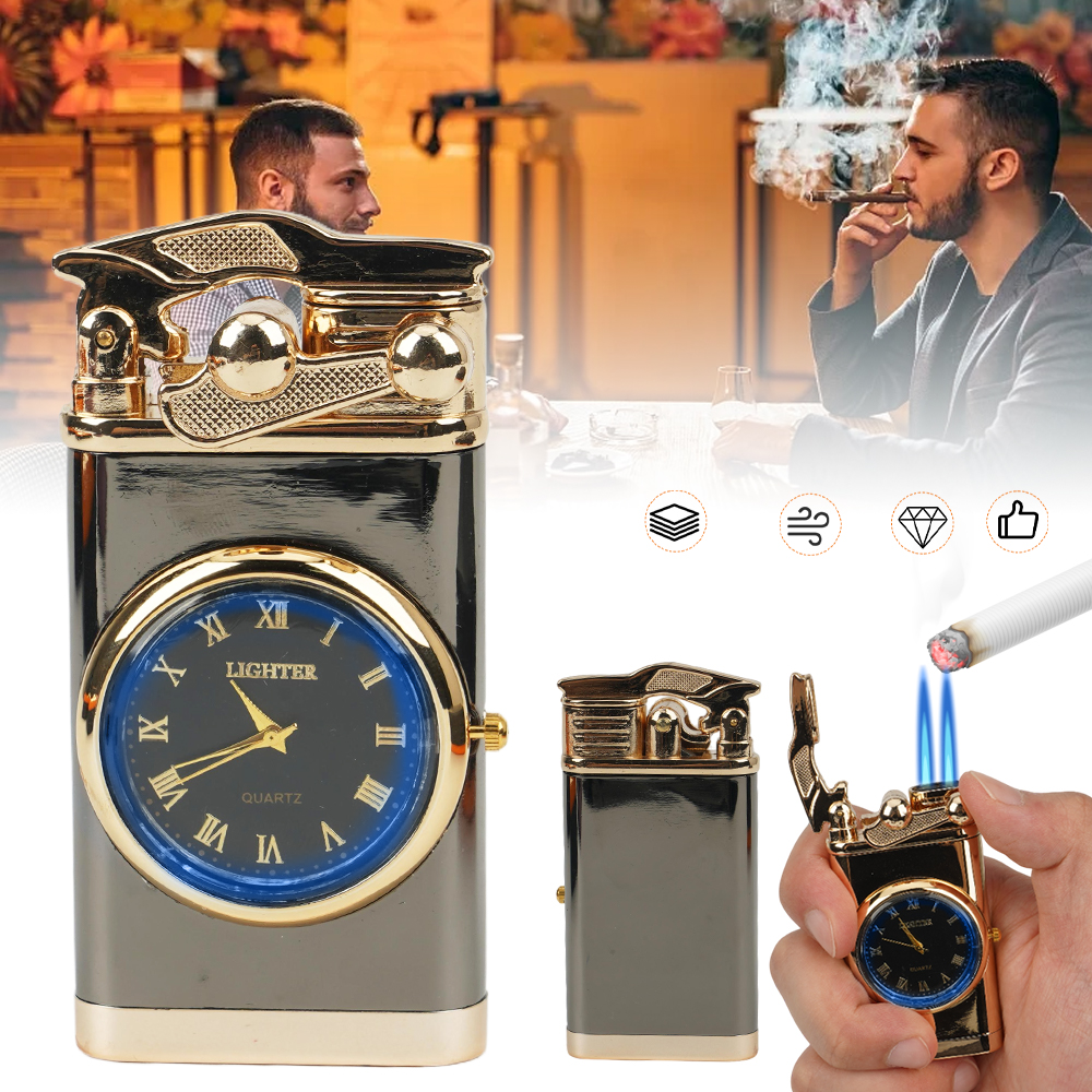💟💟【Висока якість】Виготовлена з високоякісного цинкового сплаву, ця вітростійка металева запальничка має унікальний і елегантний вигляд. Ця запальничка з подвійним полум’ям не тільки надійно запалює, але й показує час із надійною точністю.
