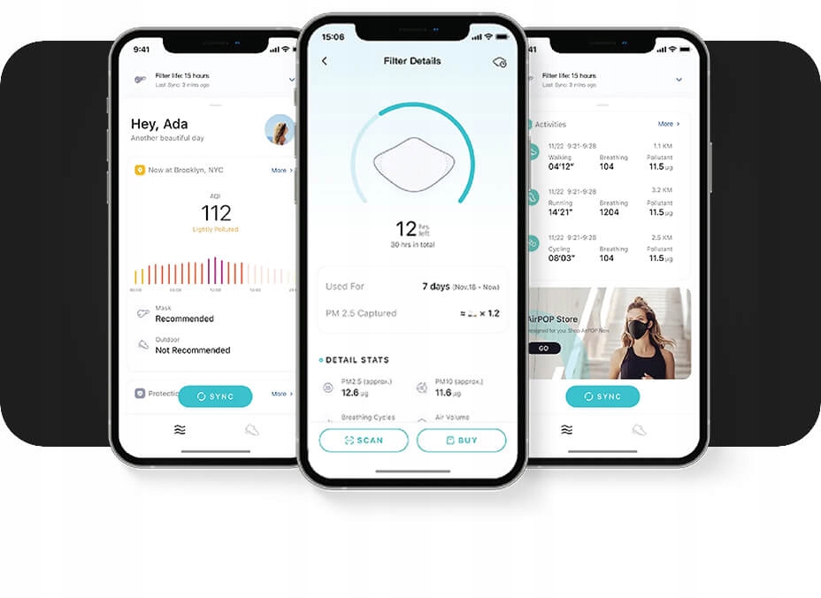 Мобільний додаток, сумісний із маскою AirPOP Active+ Halo, — ваш справжній друг. Програма повідомить поточний стан забруднення повітря у вашому районі, а також повідомить про необхідність заміни фільтра. Ви також дізнаєтесь про ефективність очищення повітря.