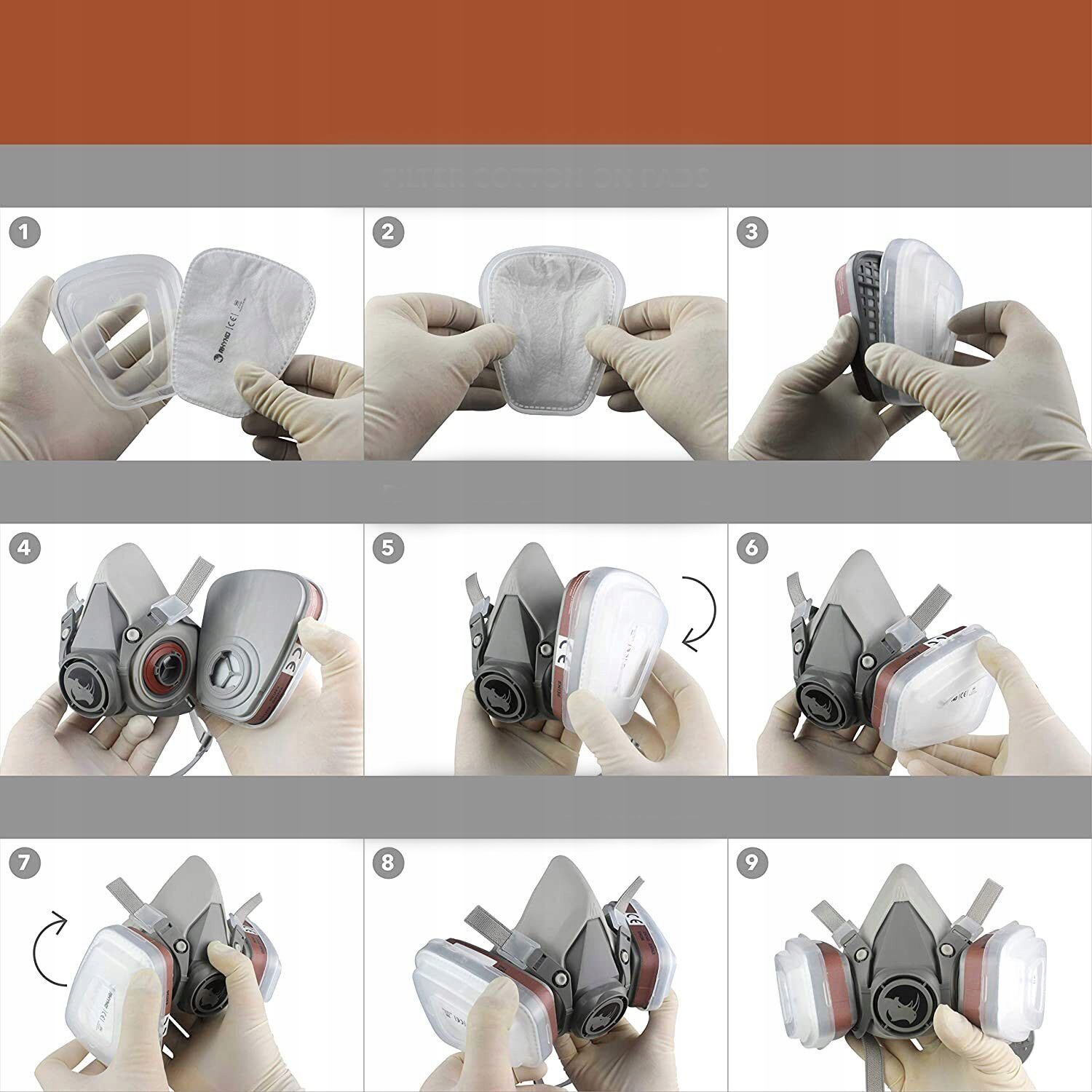 У комплект входить 1 напівщиток для обличчя, 2 коробки з фільтрами, 2 ватні фільтри, 2 пластикові кришки.
