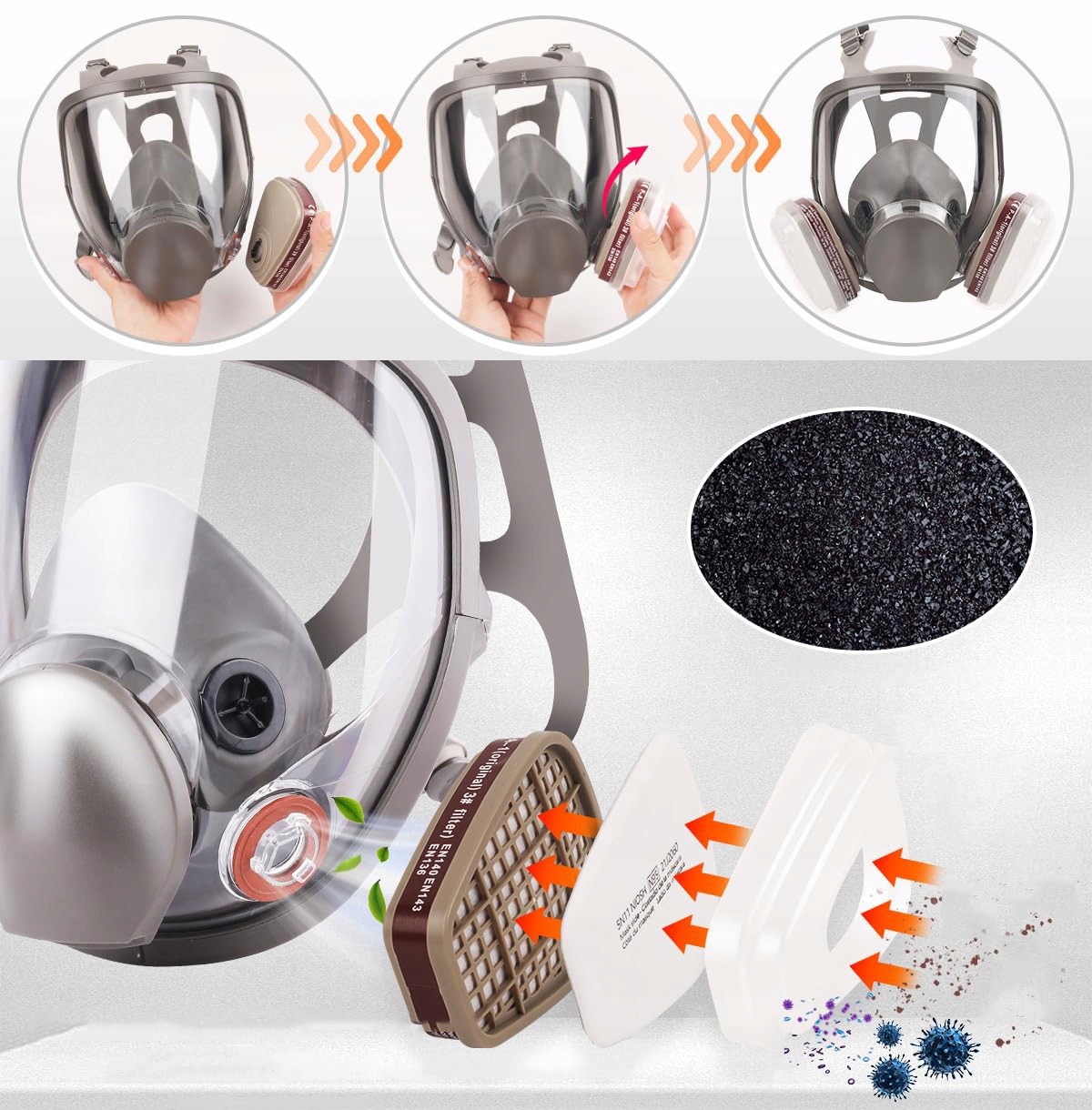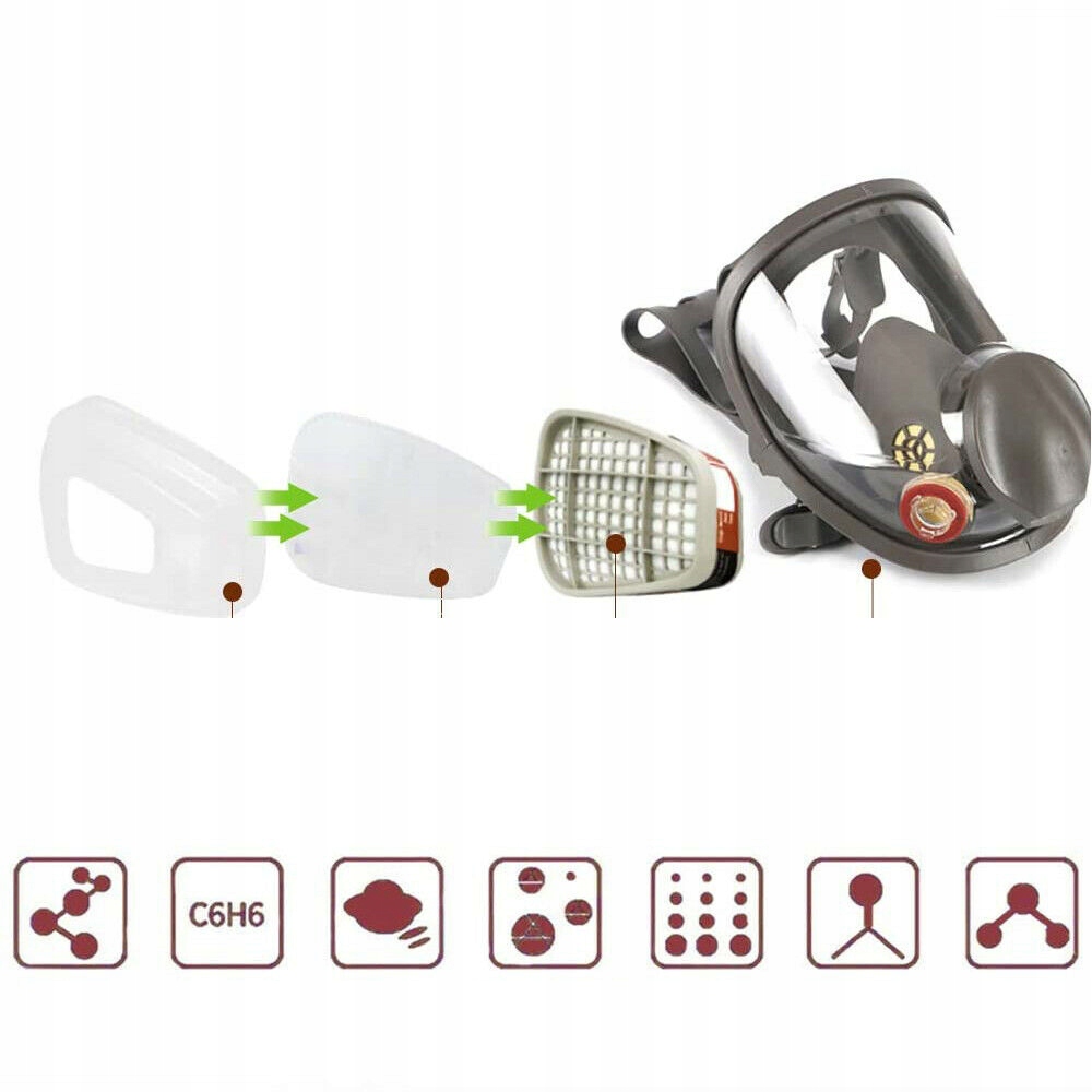 🌟【Повне покриття для багаторазового використання】Поверхня респіратора має функцію захисту від запотівання. Повнолицевий респіратор може ефективно запобігти травмам очей, носа, рота та обличчя. Немає необхідності підключати додаткові стекла, і він ізольований від навколишнього агресивного середовища.