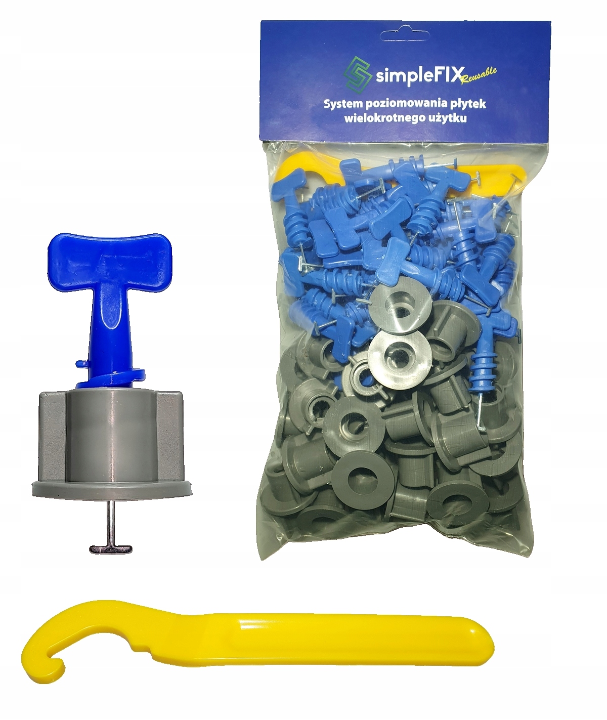 Багаторазова система вирівнювання плитки 50 шт. + 1x ключ у відрі