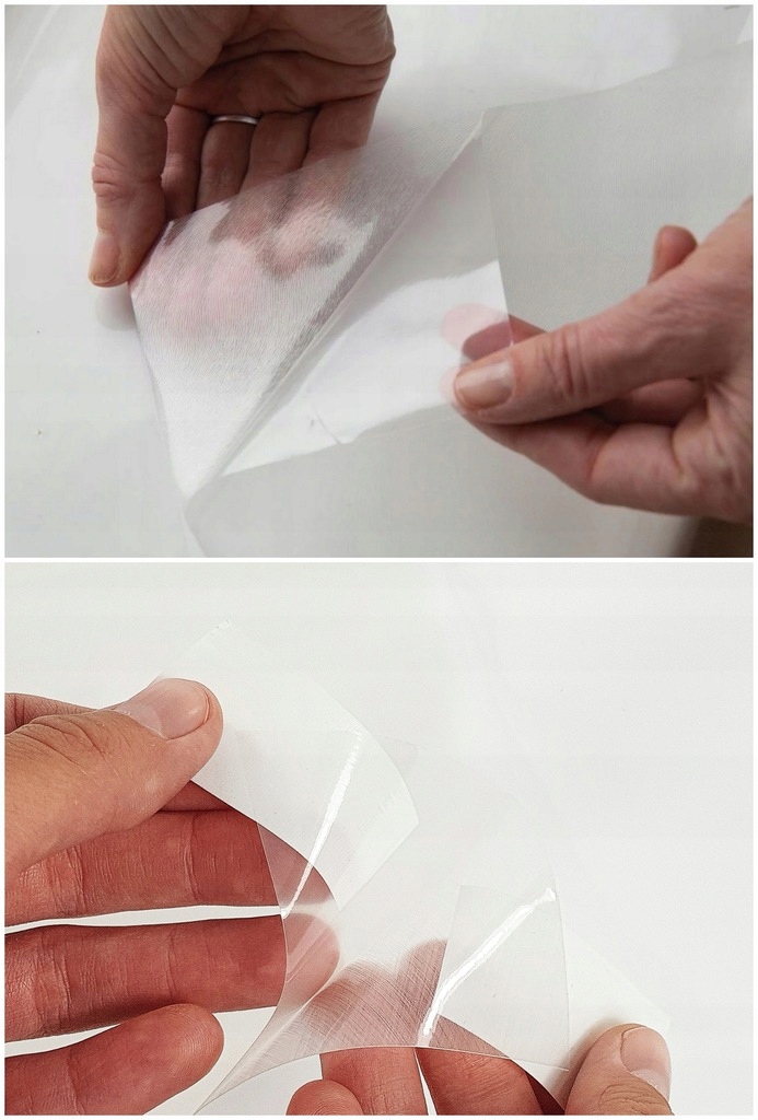 - захисний шар (тонший, залежно від візерунка може це може бути захисний папір або целофан), який відривають і викидають.
