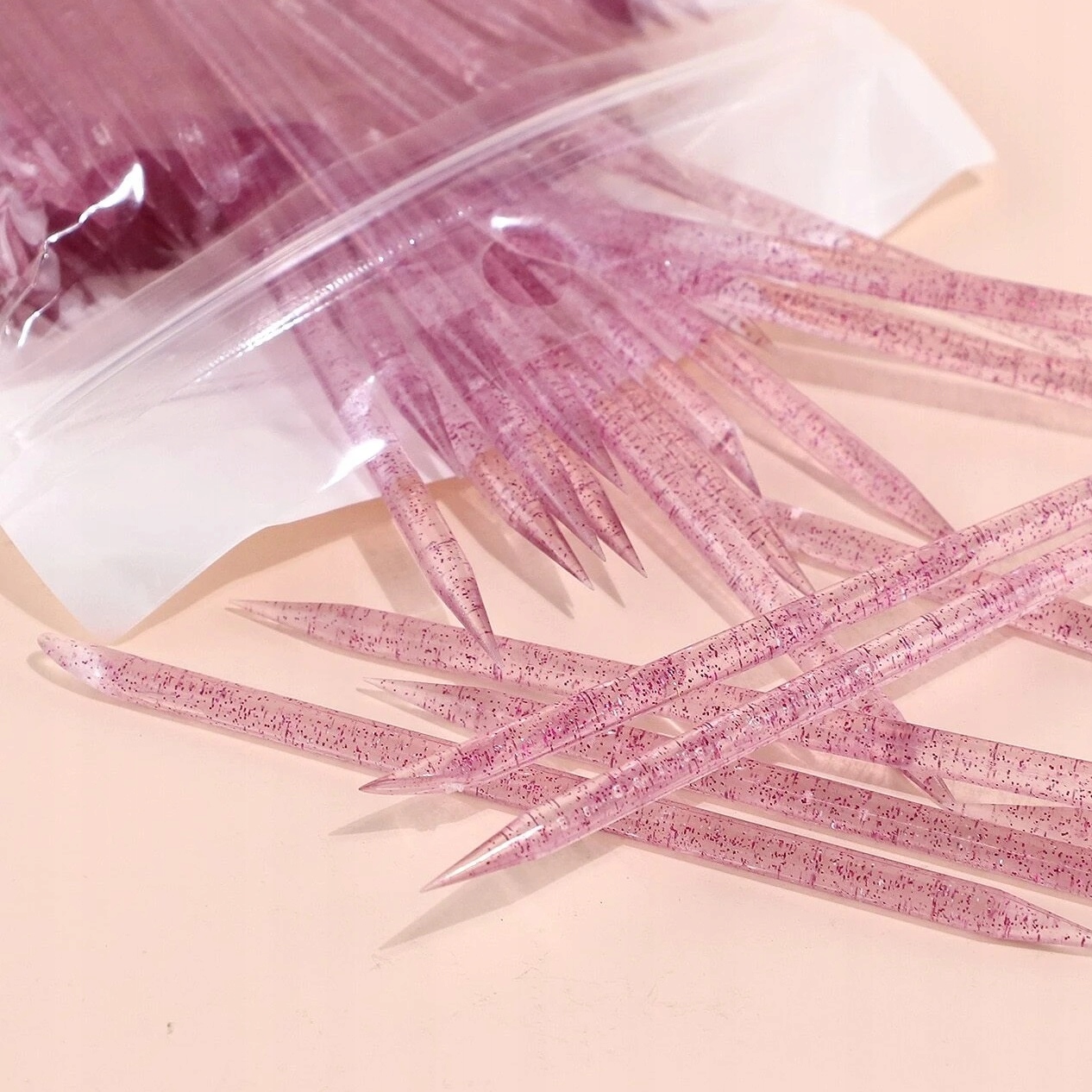 ⭐Багаторазові палички для кутикули манікюрні педикюрні пластикові 100шт рожеві блискітки Seol Cosmetics⭐