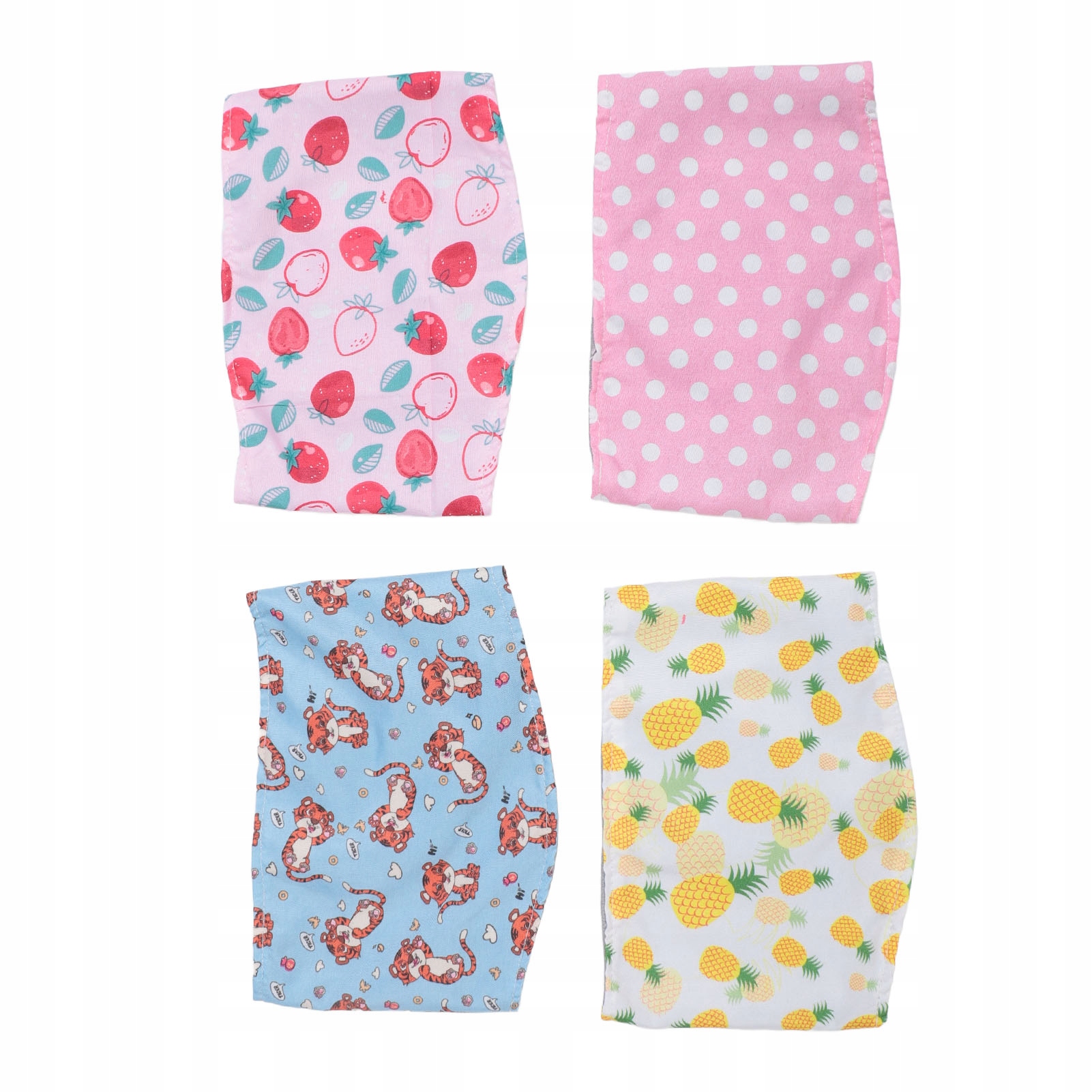 Тип товару: пелюшки для собак, які можна прати. Матеріал: поліестер Характеристики продукту: рожева крапка, жовтий ананас, рожева полуниця, маленький тигр (4 шт. 1 комплект) Використання продукту: пелюшки для домашніх тварин