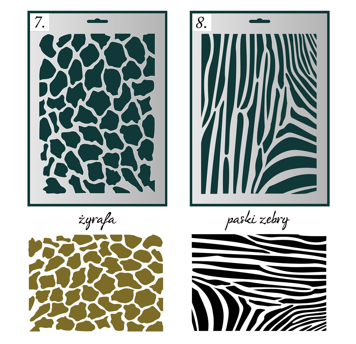 ПЛАСТИКОВІ ШАБЛОНИ для декупажу для декорування А5 з мотивами зебри, тигра, жирафа 15см х 21см придбати 1 шт. це 1 шаблон.