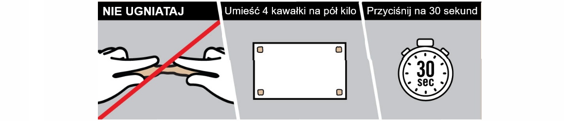 2. Виріжте необхідну кількість квадратів з монтажної суміші. Використовуйте безпосередньо з упаковки, не розминаючи, і застосовуйте приблизно 4 квадрати на 400 г ваги встановленого предмета