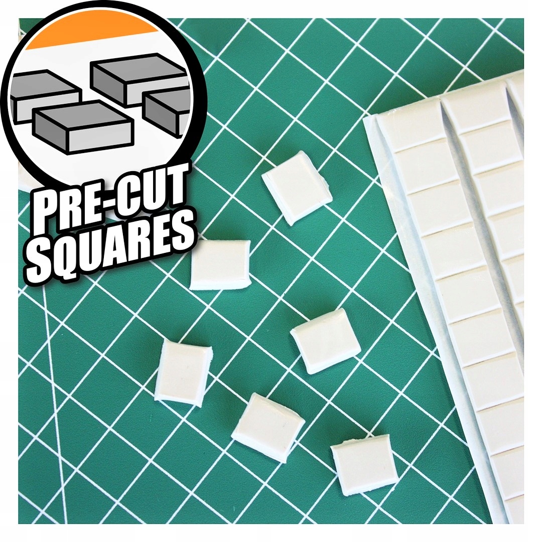 Ідеально підходить для підвішування легких предметів і виробів декоративно-прикладного мистецтва. Ця клейка речовина з низьким вмістом залишків забезпечує тривалу фіксацію, а попередньо нарізані квадрати спрощують використання.