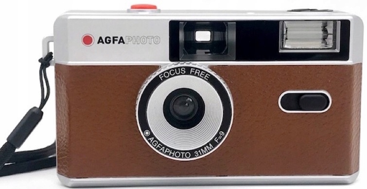 Багаторазова фотокамера AgfaPhoto коричневого кольору — чудова ідея для подарунка та ідеальна камера для всіх, хто хоче почати свою пригоду з аналогової фотографії.