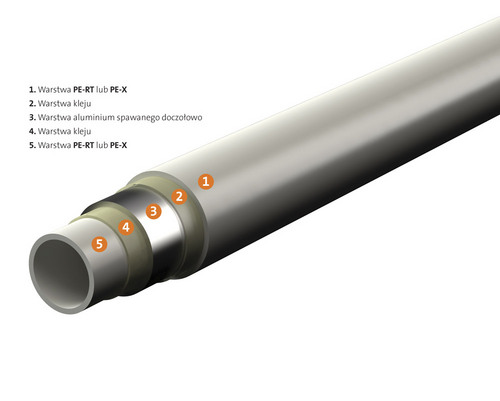 Багатошарові труби CleverFit PE-RT/AL/PE-RT з алюмінієвою вставкою поєднують у собі переваги пластикових і сталевих труб. Вони стійкі до корозії, забруднень і хімічно нейтральні. Тому вони ідеально підходять для систем опалення, холодної та гарячої води та питної води. Алюмінієвий шар, розташований всередині стінки труби, захищає від проникнення кисню через стінки труби, значно зменшує теплове розширення і дозволяє трубі зберігати свою форму. Крім того, процес з’єднання алюмінієвої оболонки встик за допомогою лазерного зварювання. На відміну від старішого способу зварювання внахлест, ця технологія забезпечує однакову товщину алюмінієвого шару по всьому перерізу та більш високу стійкість до навантажень при згині труби. Між шарами поліетилену та алюмінієвою оболонкою є спеціальний сполучний шар, який запобігає розшарування труби. Поєднання алюмінію та пластику робить труби дуже гнучкими.