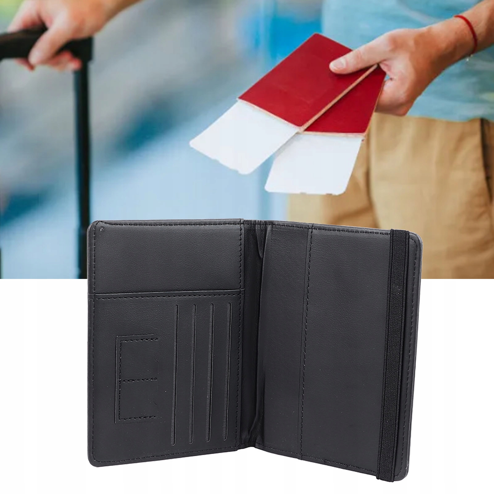 Багатошаровий поліуретановий тримач для паспорта, чорний, водонепроникний, зручний QR