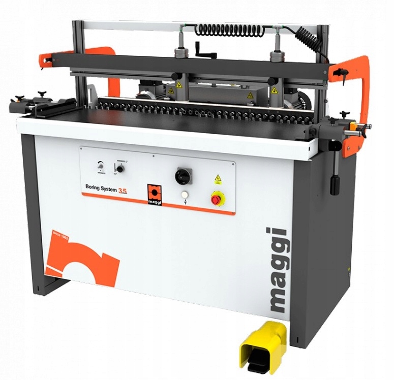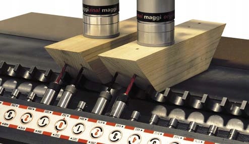 Maggi BS 35 має два затискачі, які запобігають переміщенню матеріалу під час свердління. Крім того, це дозволяє обробляти два елементи одночасно.