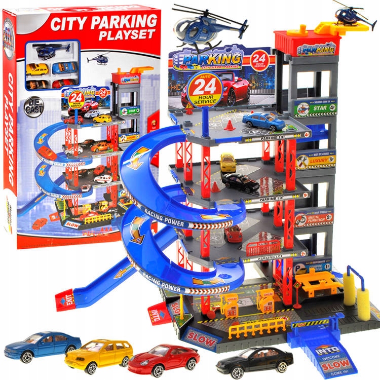 Набір для хлопчика складається в основному з величезної конструкції багатоповерхової стоянки, а також додаткових елементів - великого набору наклейок для оформлення траси, конусів і знаків безпеки, шлагбаумів. У представлений паркувальний набір входить автомийка і станція з паливороздавальними колонками, необхідними для тривалих і виснажливих подорожей. Кожна з машин може їхати зовсім іншим маршрутом — зайшовши на обраний рівень за допомогою ліфта, розташованого у верхній частині іграшки, машину можна припаркувати на одному з поверхів, а потім вона спуститься вниз по сенсаційній спіралі. Також машину можна підняти на ліфті на нульовий рівень, а після заправки та перевірки шасі прогнати через шлагбаум.