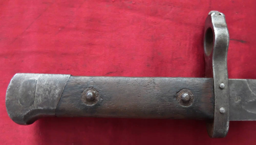Копію можна побачити на фото. Добре збереглася. Лезо нешліфоване, вкрите темним нальотом. На кромці леза заводське маркування Steyr - OEWG. З іншого боку клинка менш виразний військовий символ - орел CK. Накладки ручок оригінальні з дерева. Багнетний замок справний. Номер 44 вибитий на хрестовій гарді, а на наконечнику є слабкі полкові позначки.