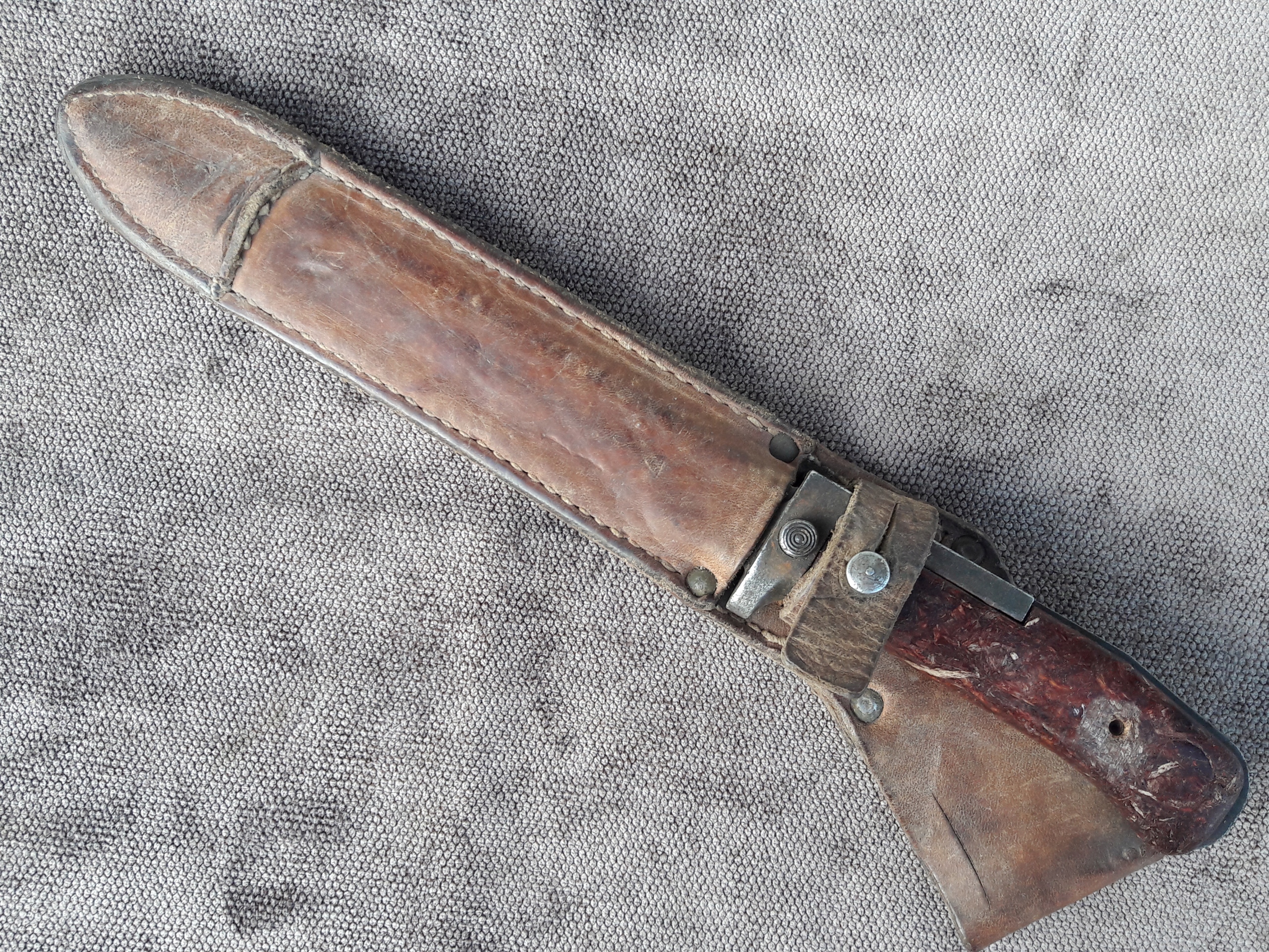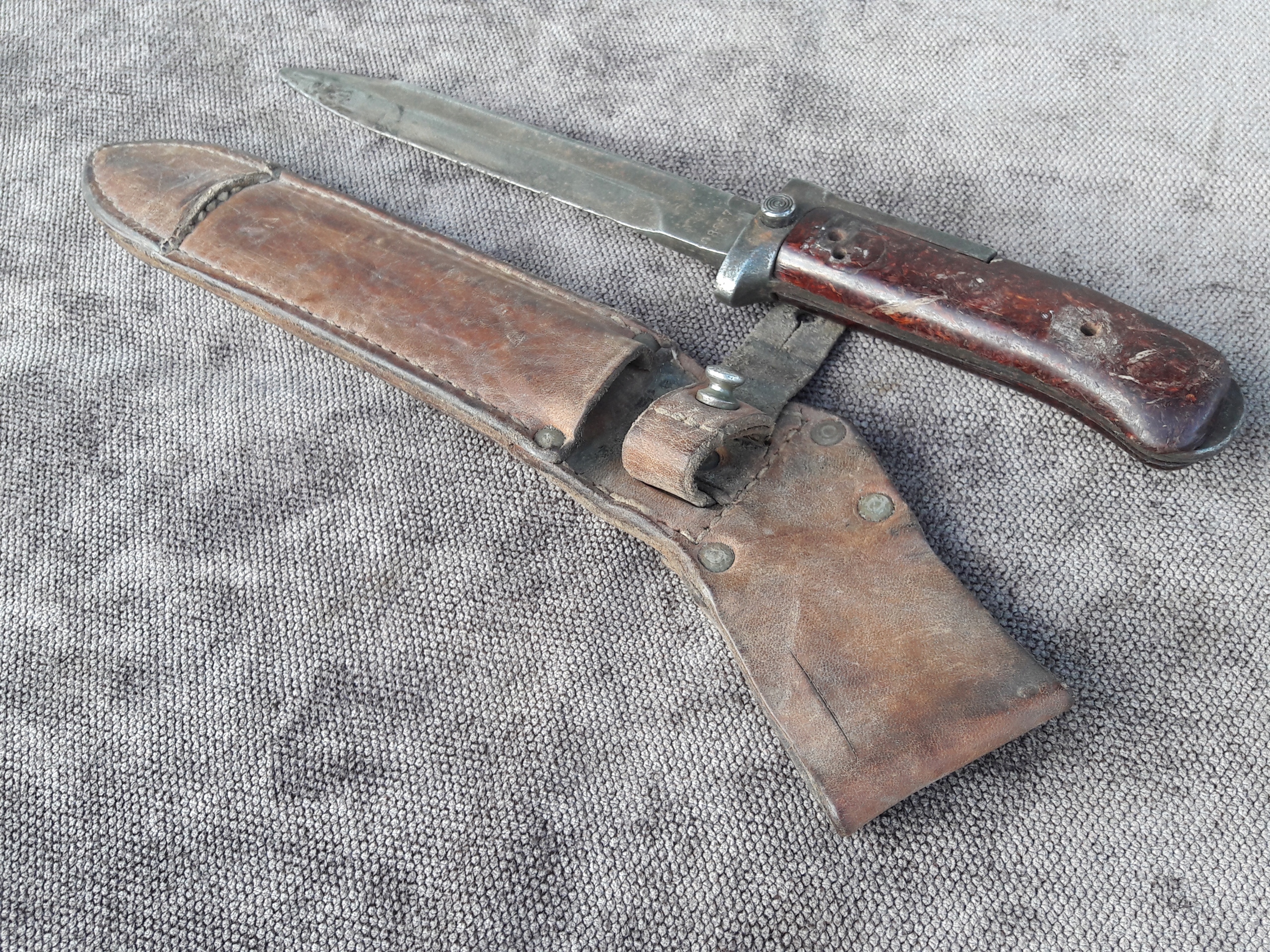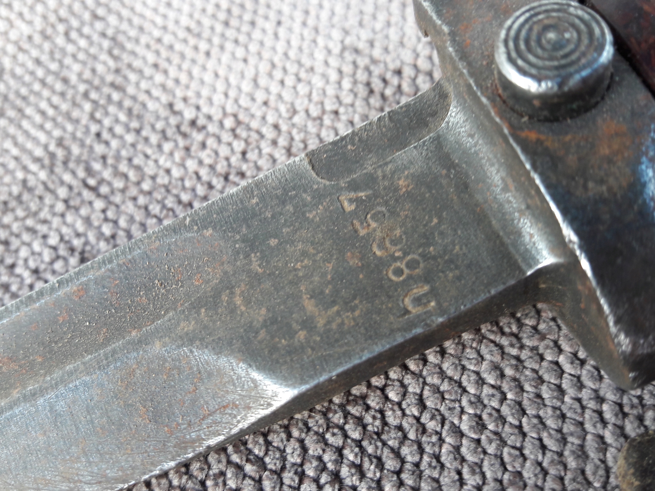 Піхви виготовлені з гладкої шкіри. На клинку є порядкові номери багнета.