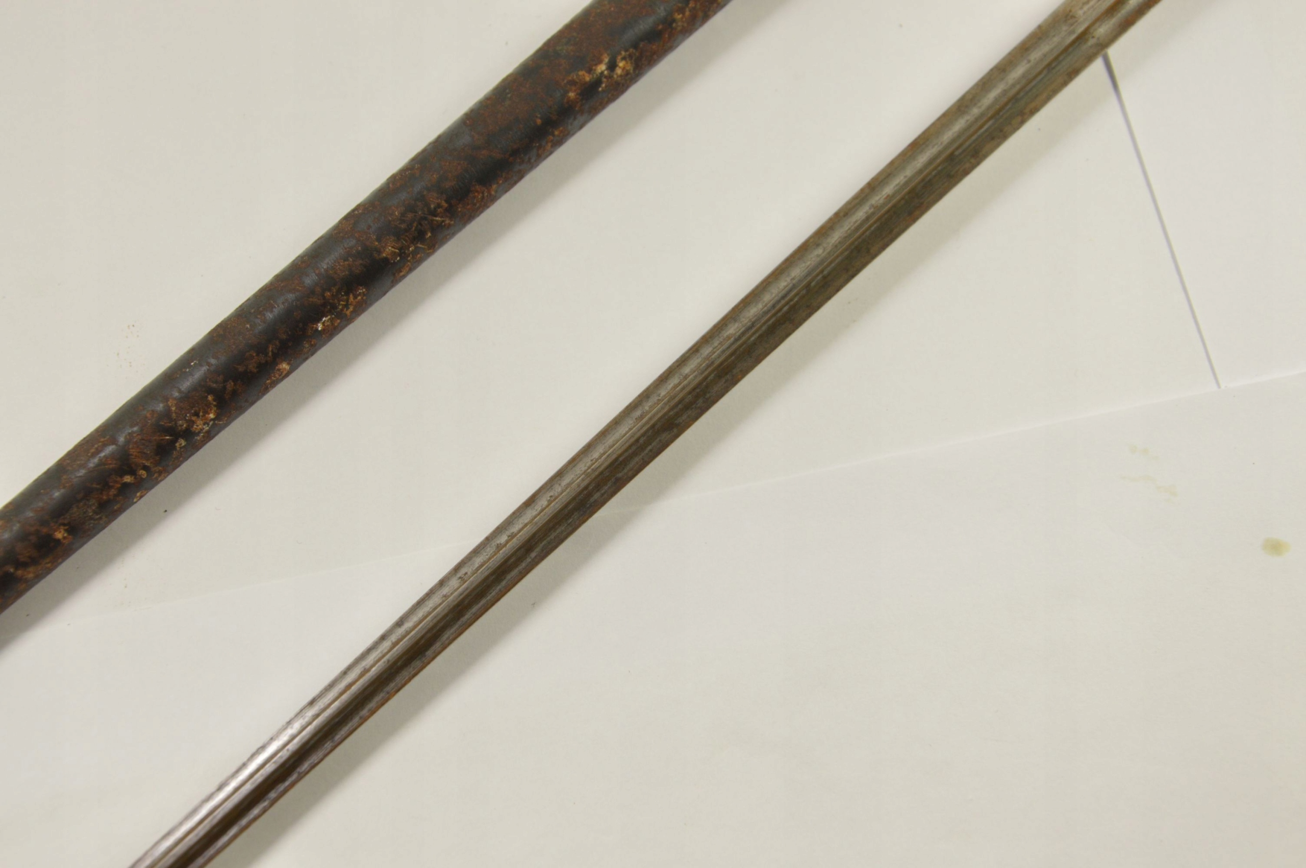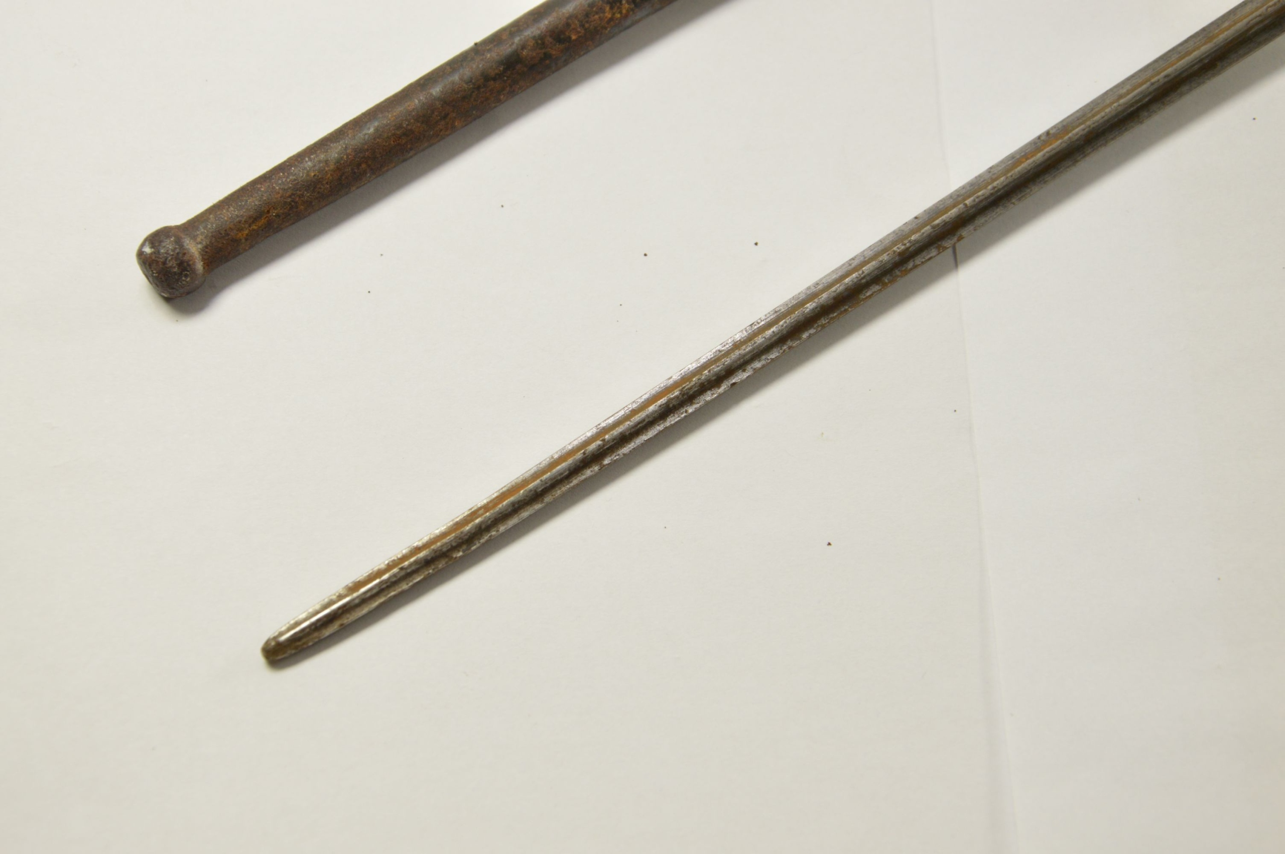 Оригінальний французький багнет для рушниці Лебеля. Багнет прямий з видимими слідами використання - фото, засувка функціональна. Піхви прямі, багнет не втягується до кінця - залишається 4 см за межі піхов, для перевірки.