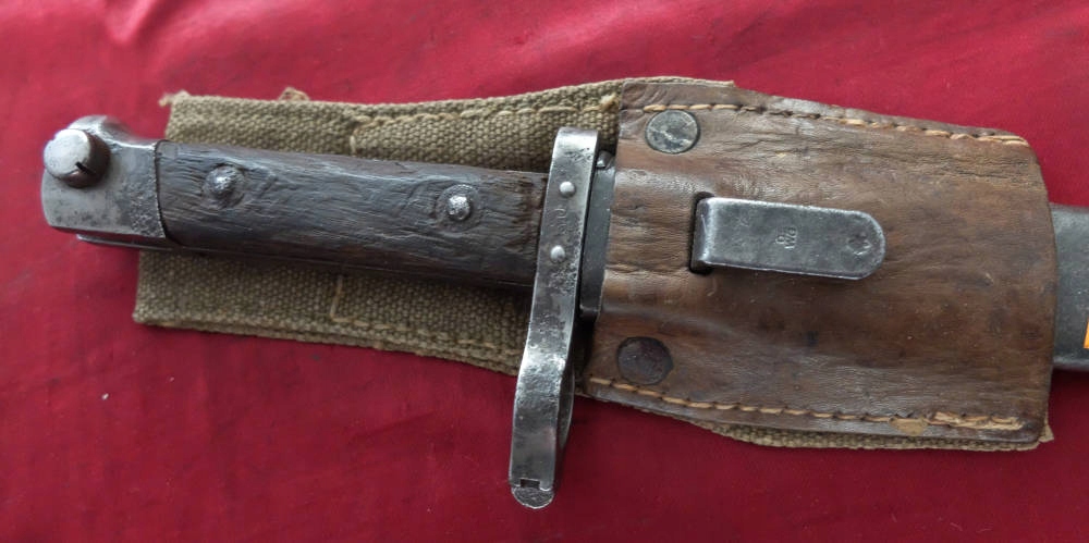 Підходить до піхов багнетів Mannlicher моделей 1888, 1890, 1895. Копія є видно на фотографіях. Дуже гарно збереглася. Основна частина виконана з щільного полотна, кишеня шкіряна.