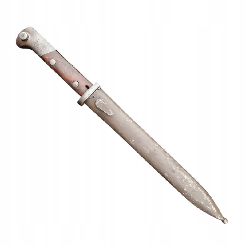 Багнет польський візерунок 24 з візерунком на голові, з великою кількістю оригінальної фарби хакі, збереглося близько 80% фарби, багнет з номером 181901, риса S у квадраті на порозі лезо, на піхвах літера М у трикутнику, [ Capt. Modliński ], багнет у гарному природному стані, піхви без заломів, багато фарби, дуже хороші обкладинки, гвинти кришки цілі, лезо, гравіювання без будь-яких слідів втручання, дуже хороший стан багнета, рекомендуємо.