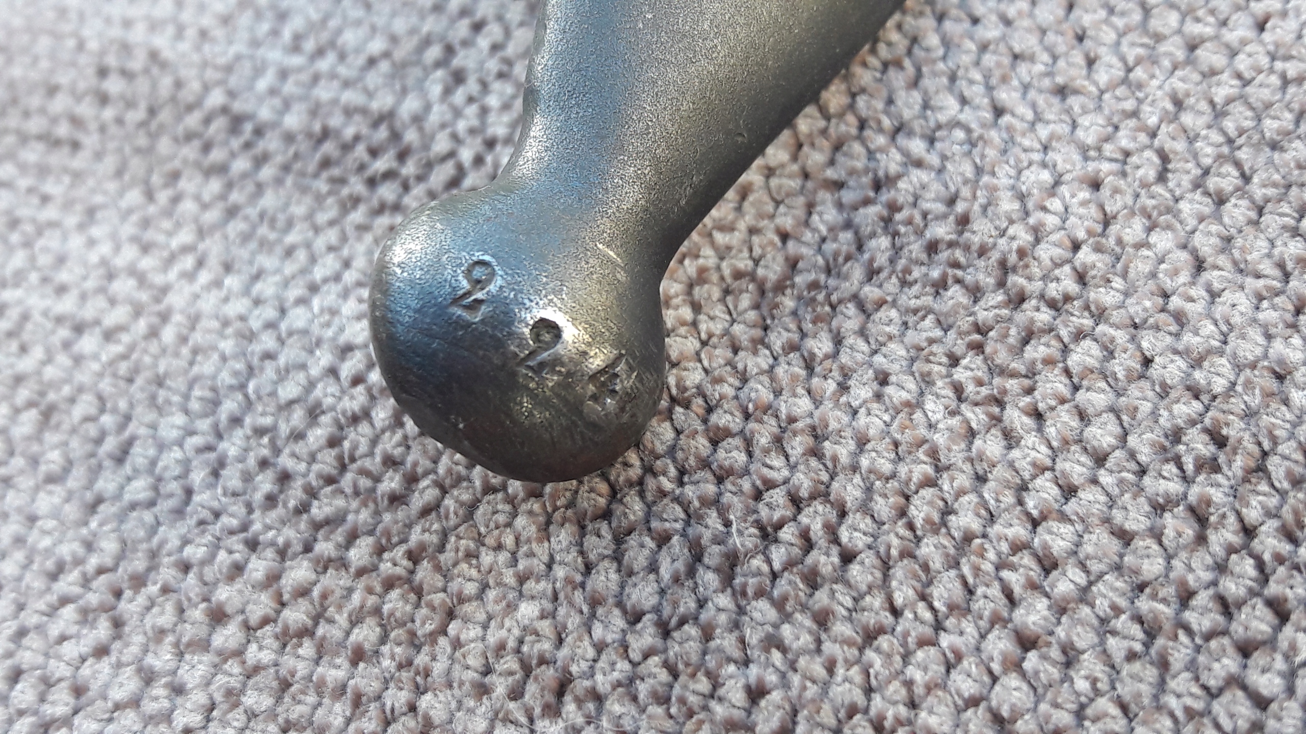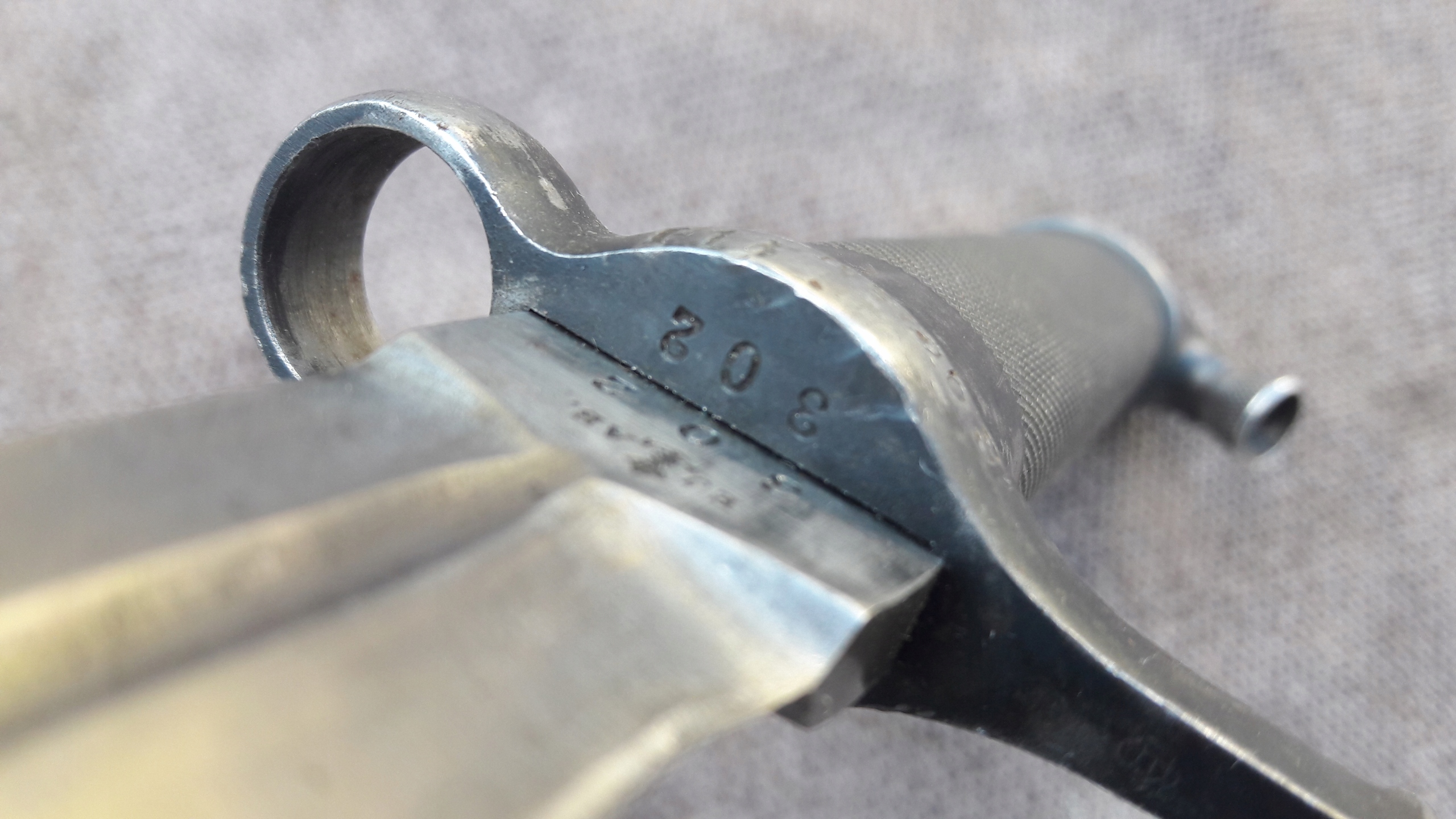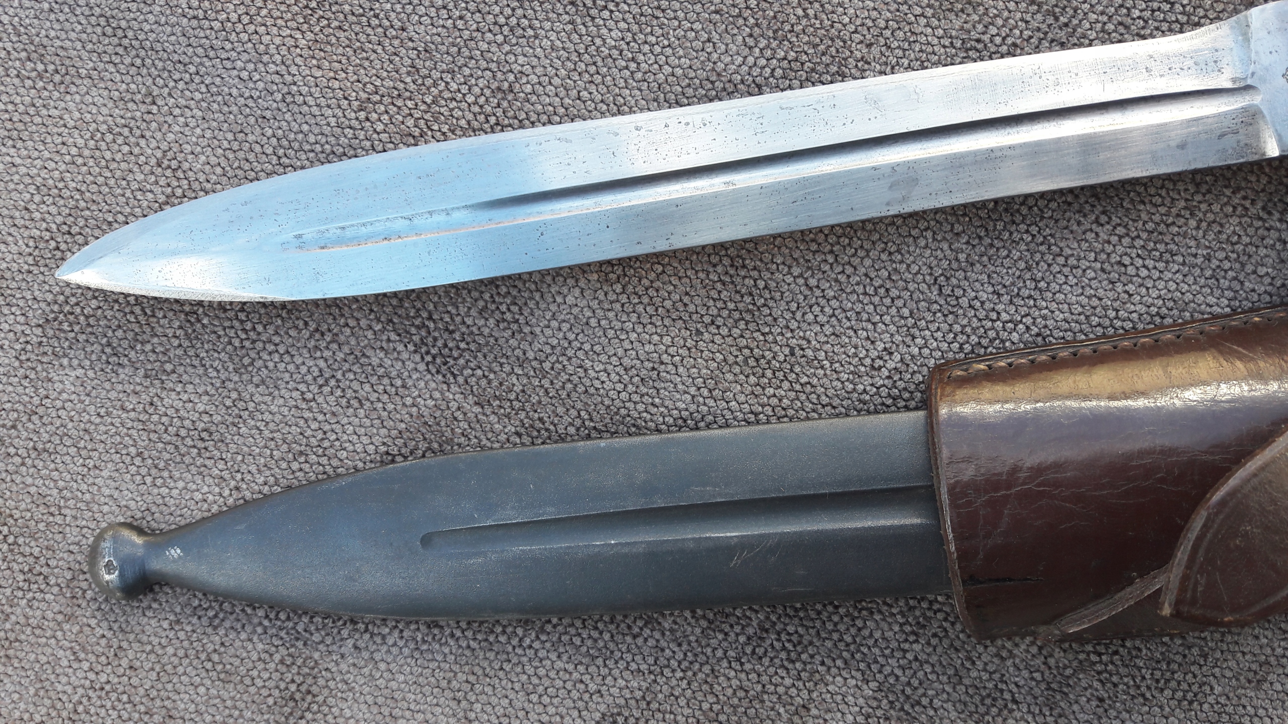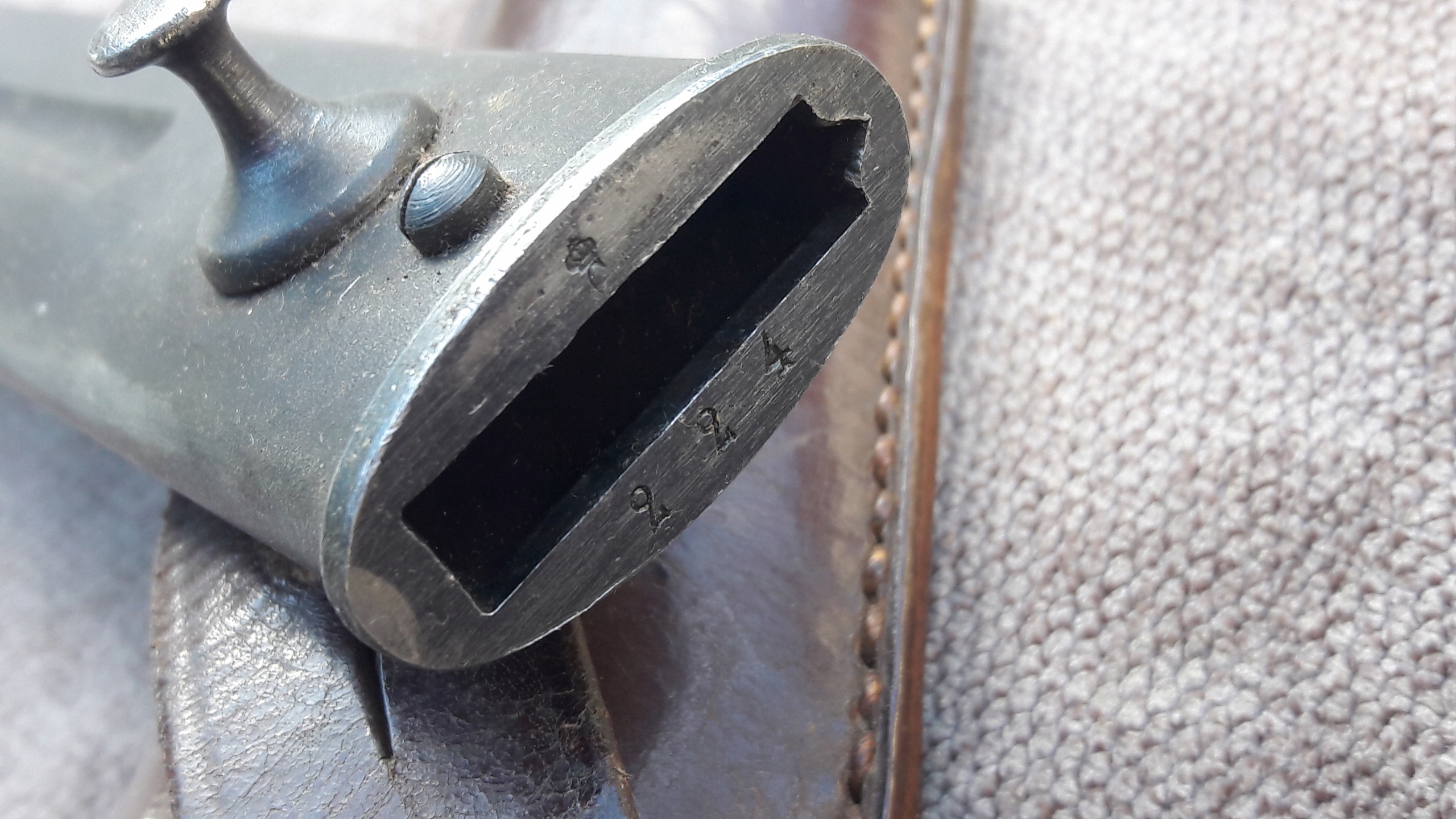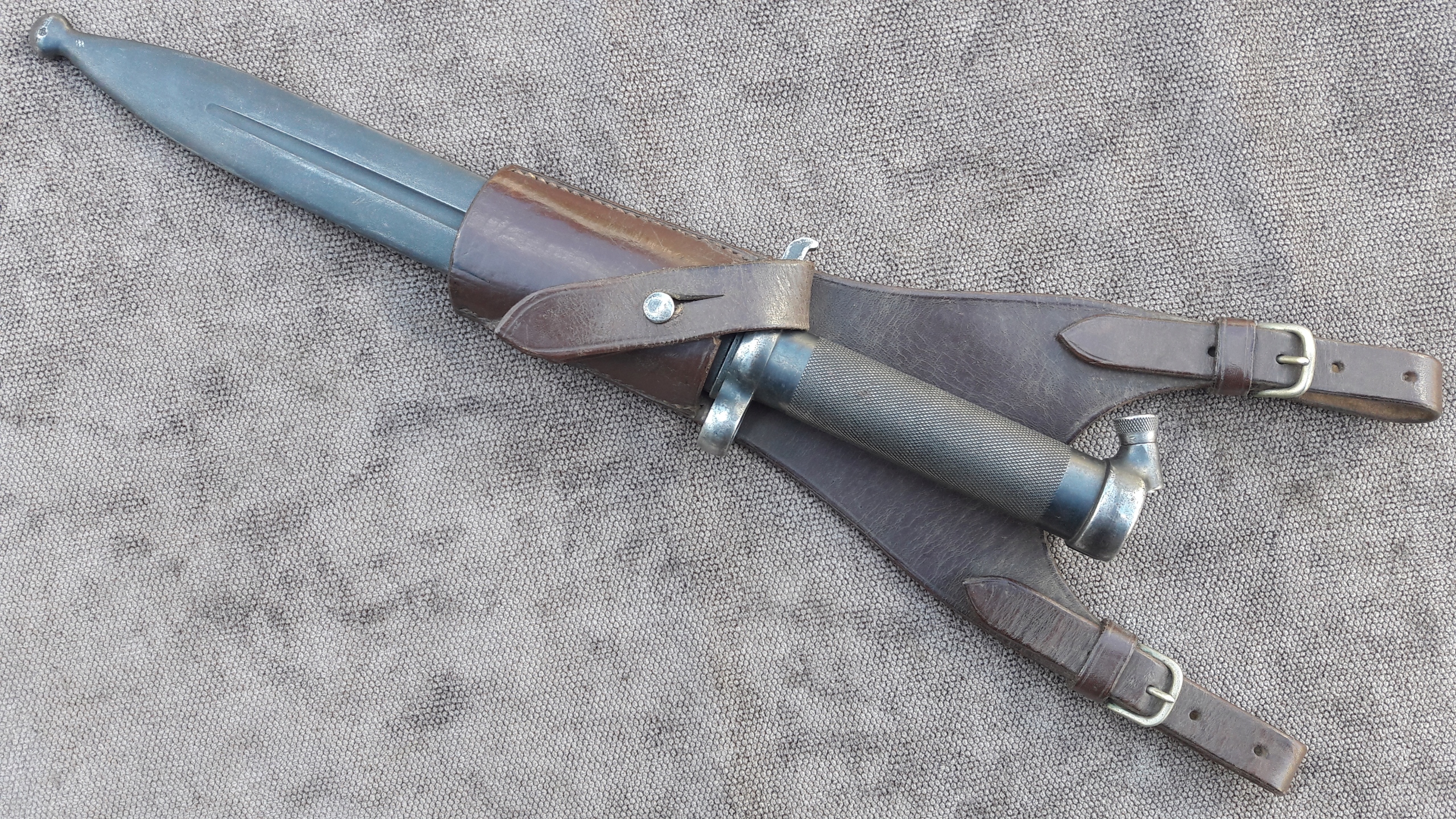 Багнет з багатьма пробійками/пробійками. У комплекті оригінальне офіцерське жабо (рідко). Жаба і піхви також мають проколи.
